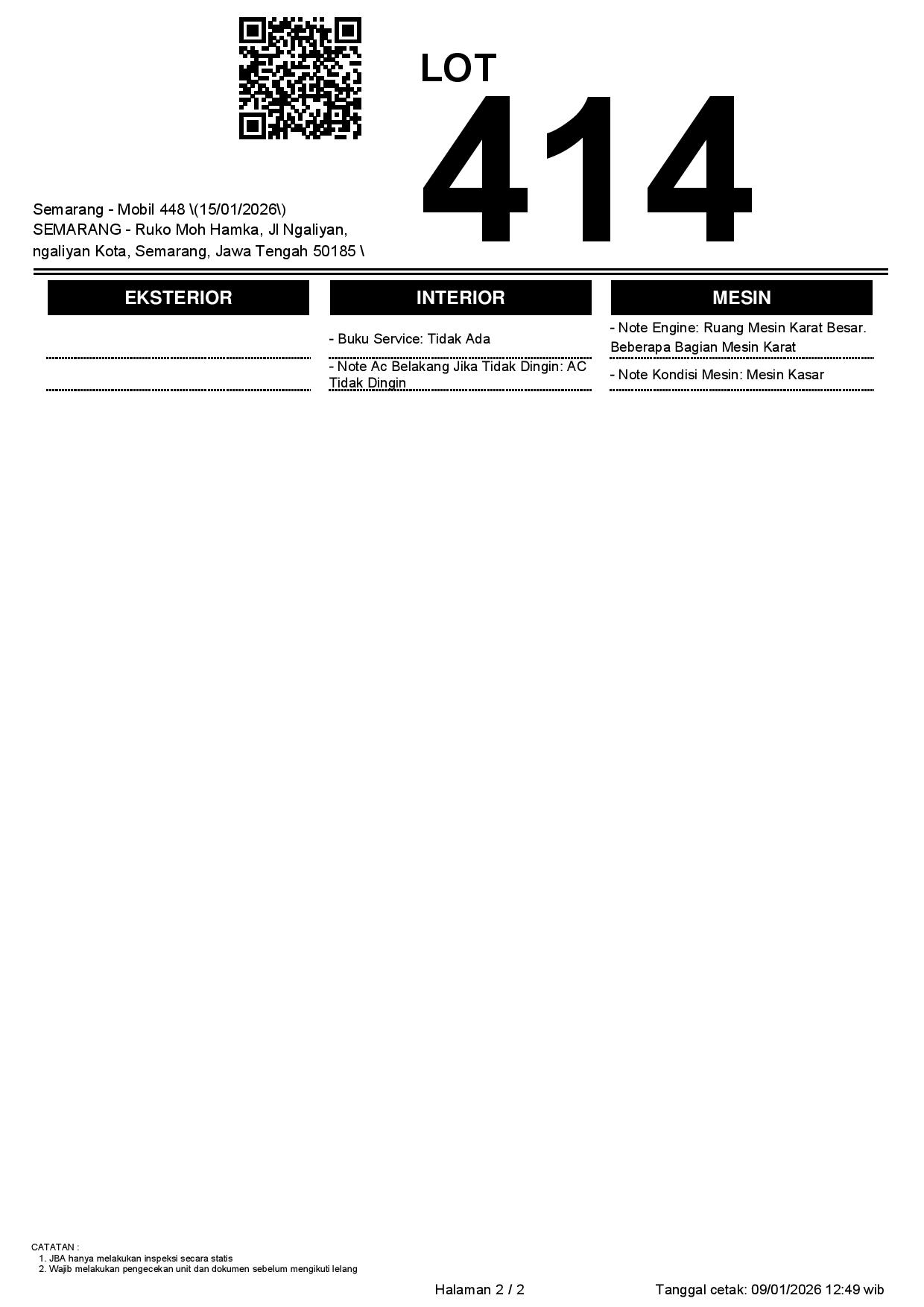 1. Peserta lelang wajib cek unit & dokumen