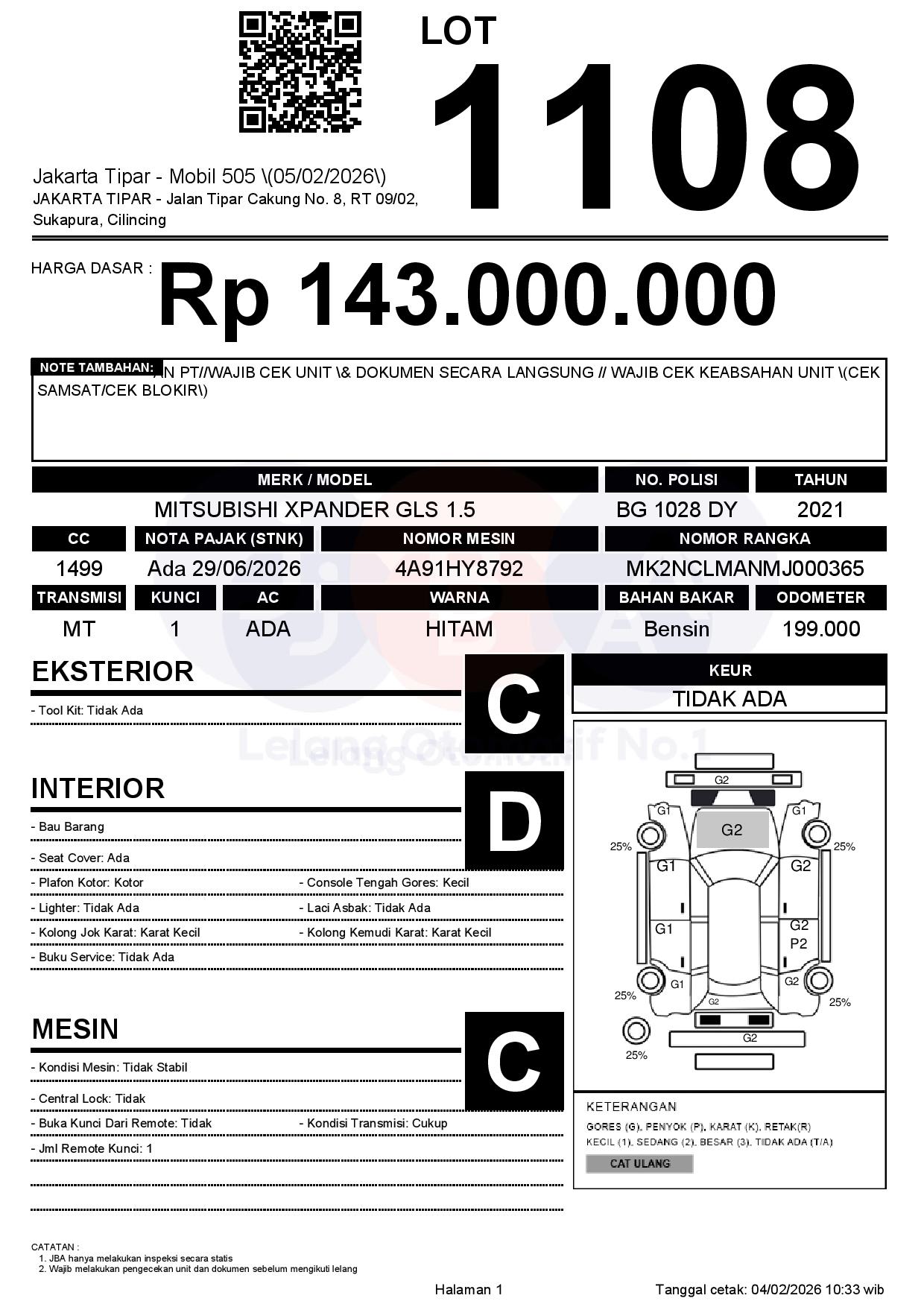 1. Peserta lelang wajib cek unit & dokumen