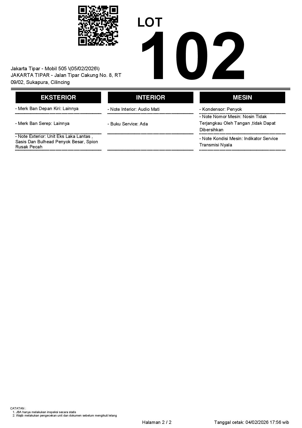 Tanggal Lelang: 05/02/2026 | 13:00 WIB