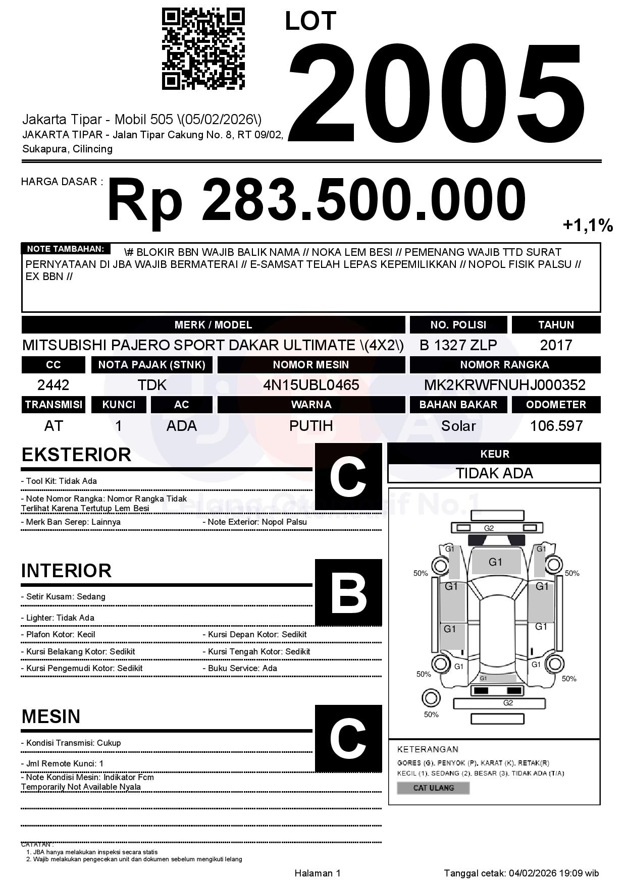Tanggal Lelang: 05/02/2026 | 14:00 WIB