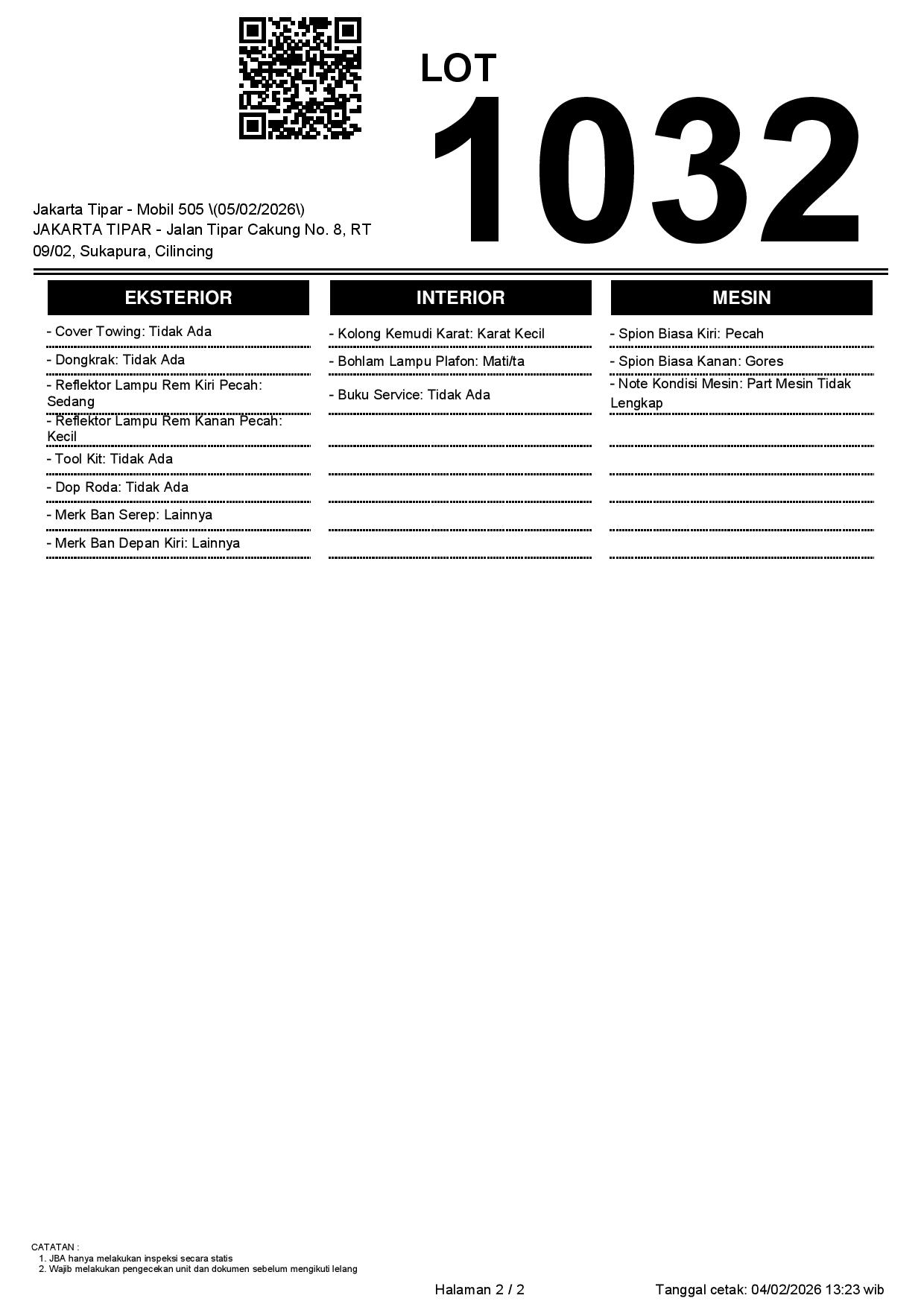 Tanggal Lelang: 05/02/2026 | 14:00 WIB