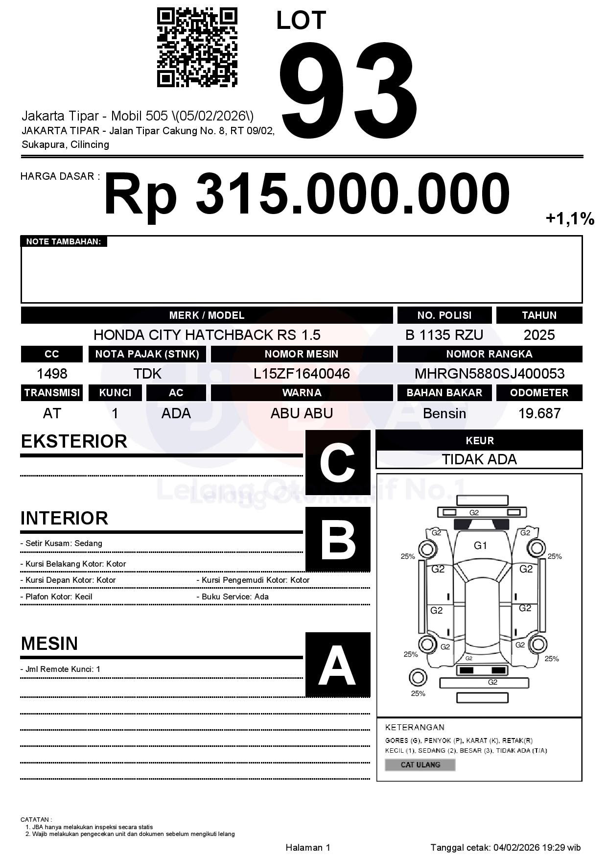Tanggal Lelang: 05/02/2026 | 13:00 WIB