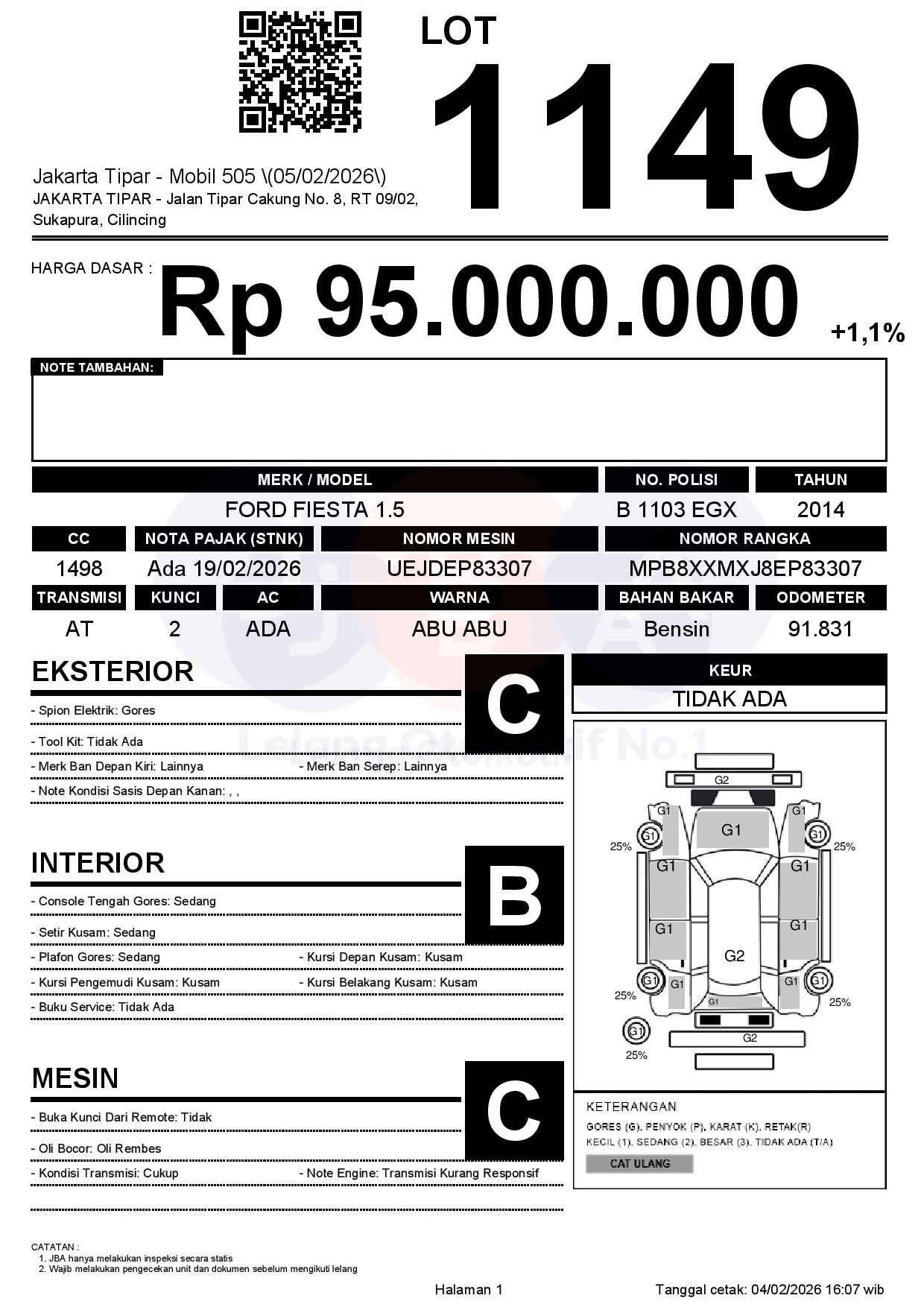 Tanggal Lelang: 05/02/2026 | 14:00 WIB