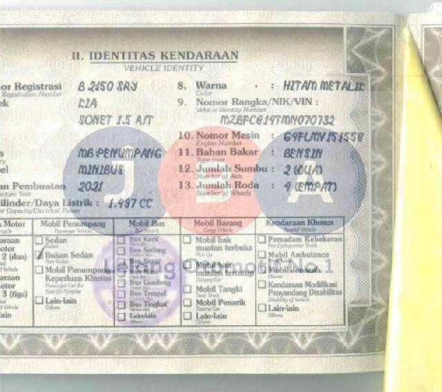 TYPE UNIT DI DOK(SONET 1.5) // TINTA FAKTUR PUDAR DATA KENDARAAN TDK TERBACA //