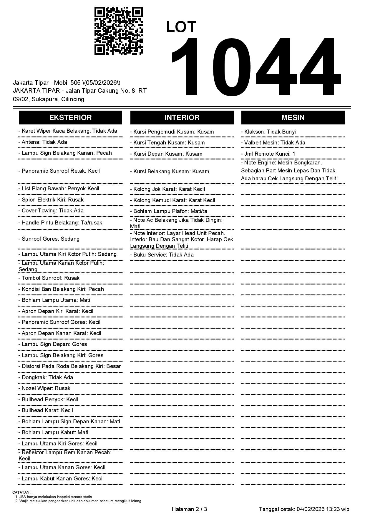 2. Peserta lelang wajib cek unit & dokumen