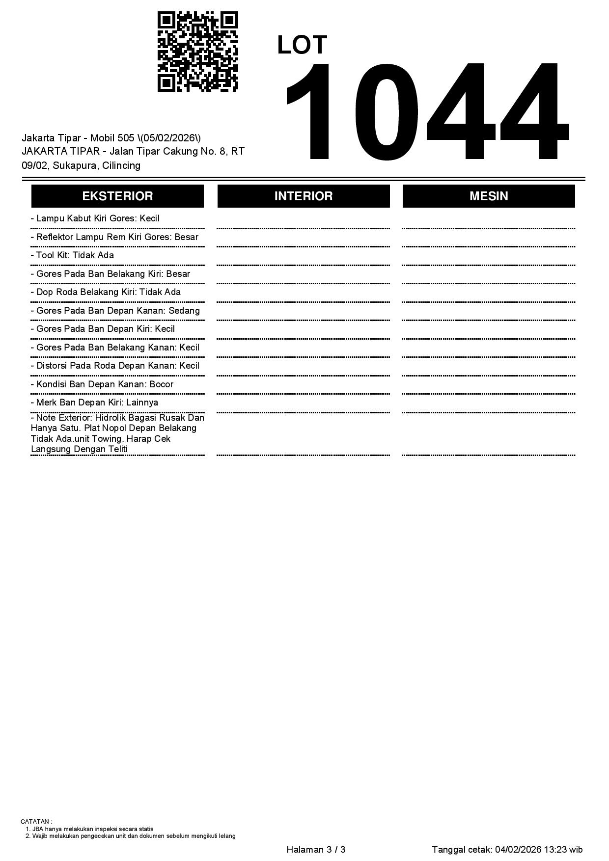 Tanggal Lelang: 05/02/2026 | 14:00 WIB