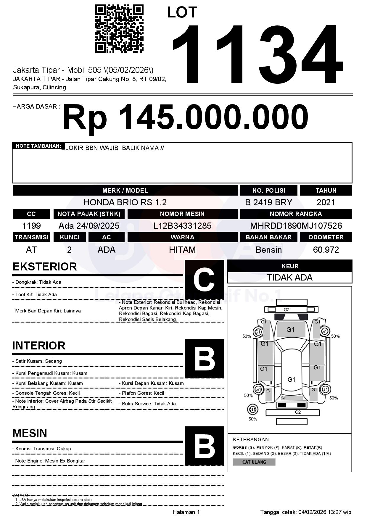 Tanggal Lelang: 05/02/2026 | 14:00 WIB