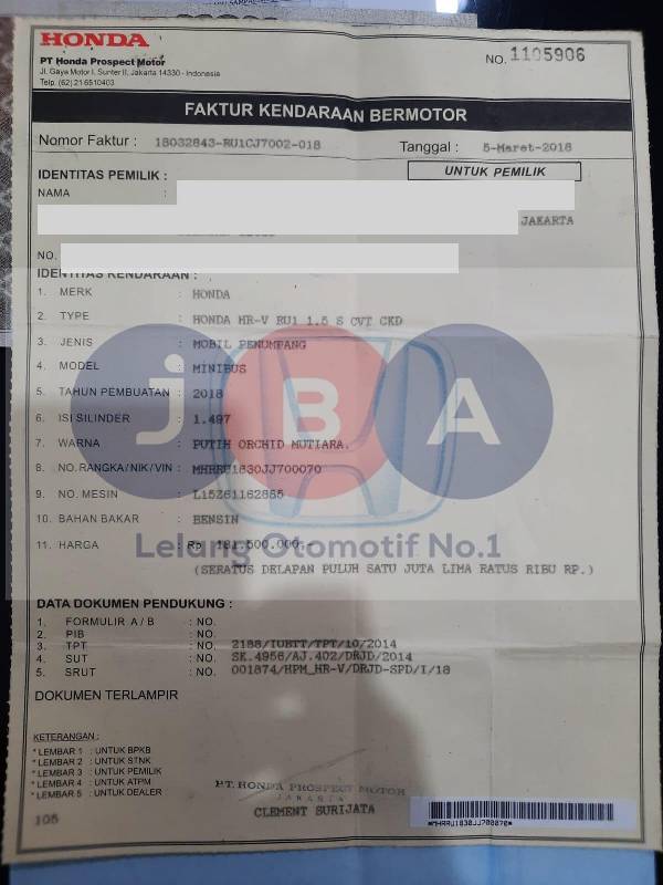 EX GANTI NOPOL DAN BBN // TERDAPAT BEKAS TIPEX PENULISAN WARNA UNIT PADA BPKB // TERCANTUM TULISAN PINDAH ALAMAT DI STNK //