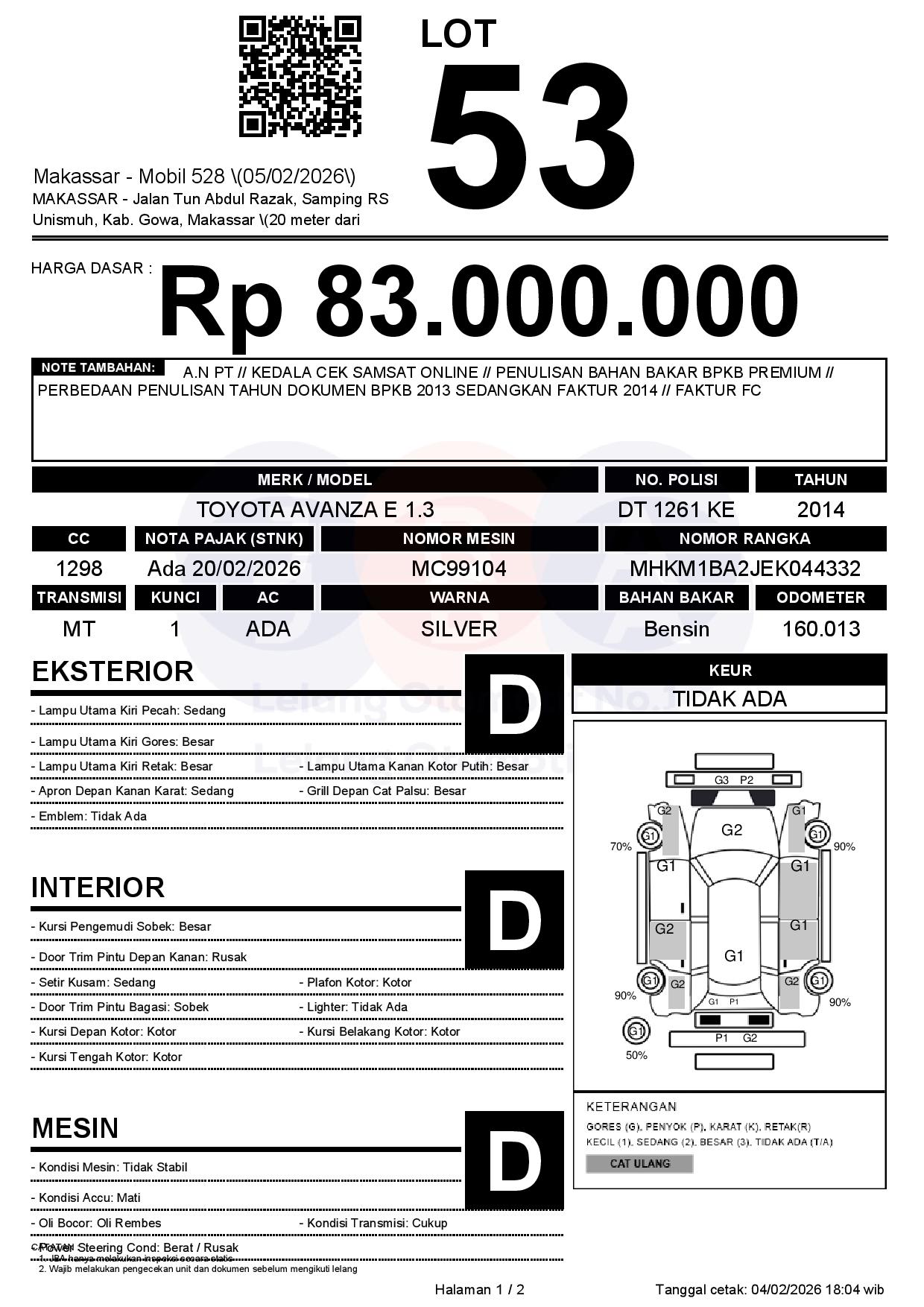 Tanggal Lelang: 05/02/2026 | 13:00 WITA
