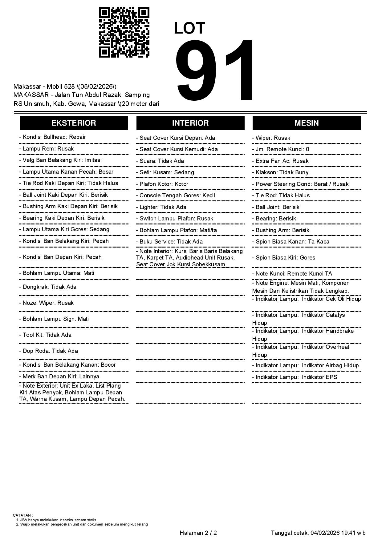 1. Peserta lelang wajib cek unit & dokumen