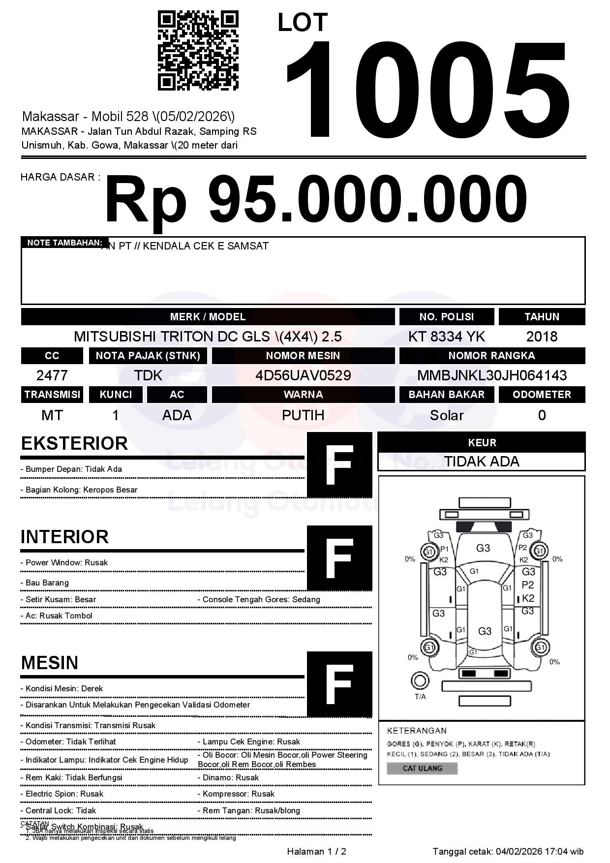 Tanggal Lelang: 05/02/2026 | 13:00 WITA