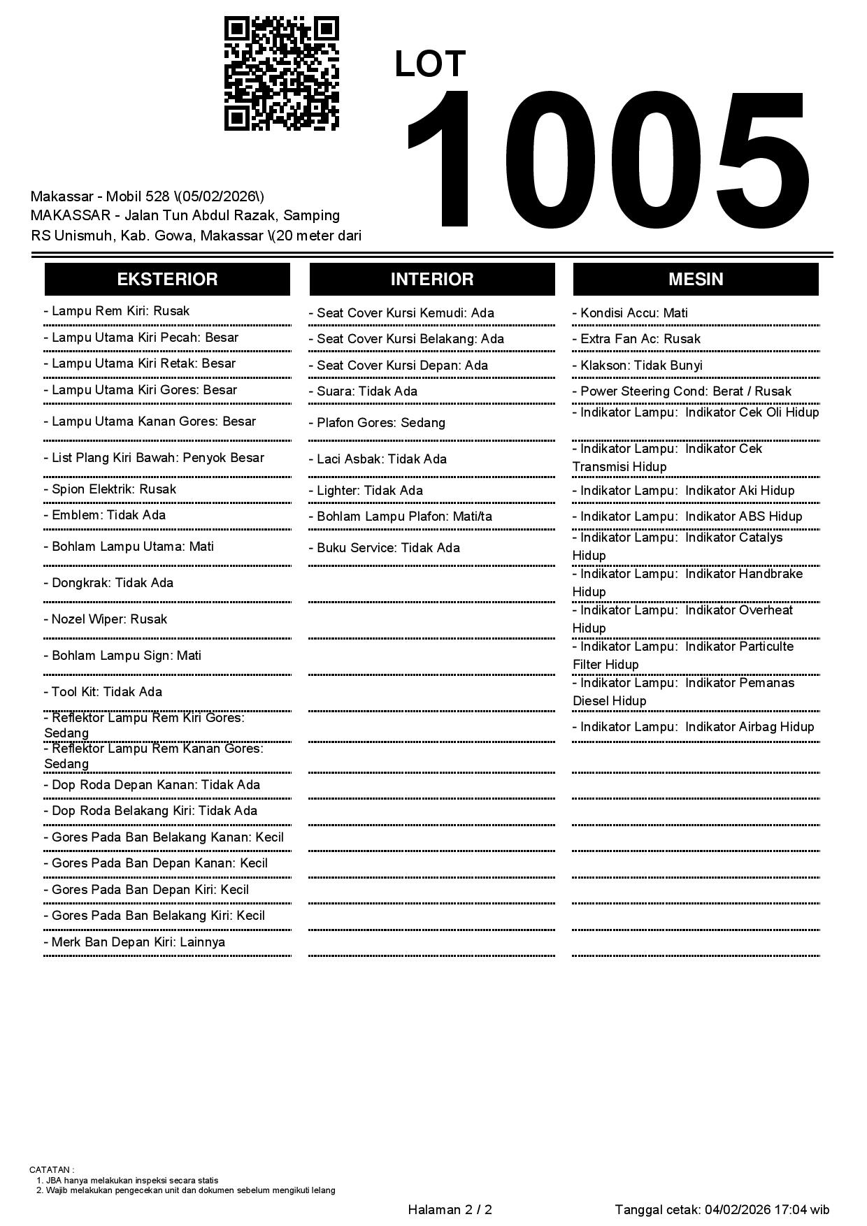 1. Peserta lelang wajib cek unit & dokumen