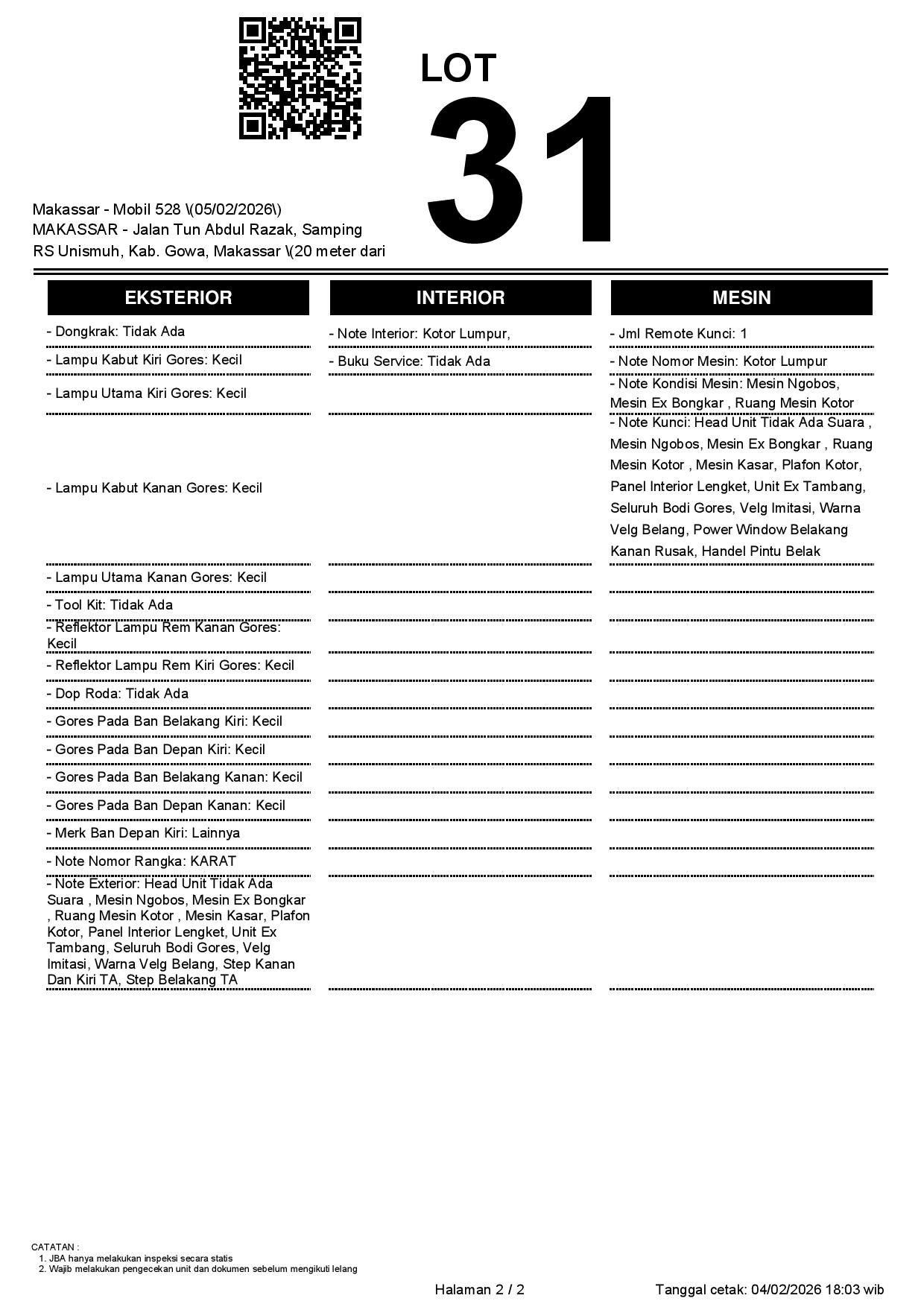 1. Peserta lelang wajib cek unit & dokumen