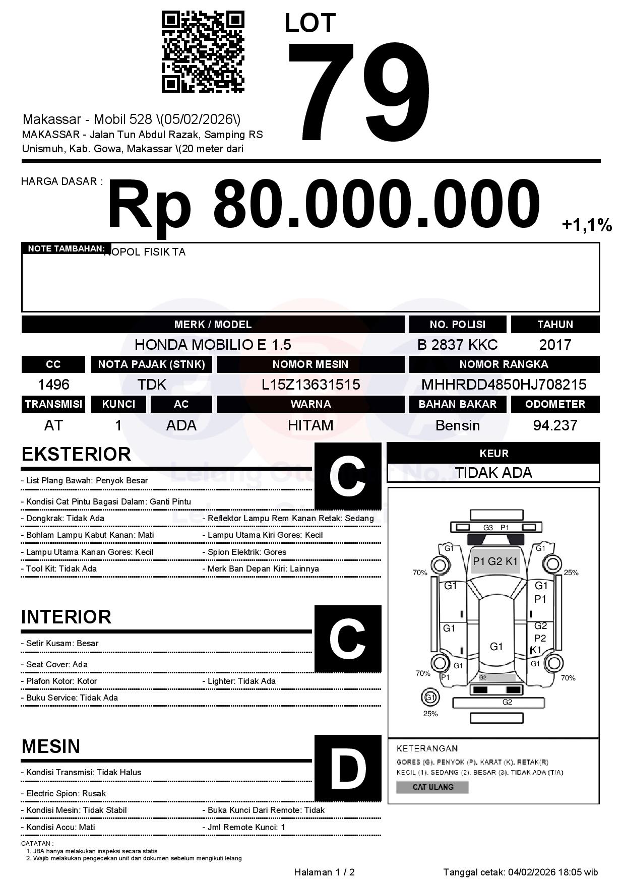 Tanggal Lelang: 05/02/2026 | 13:00 WITA