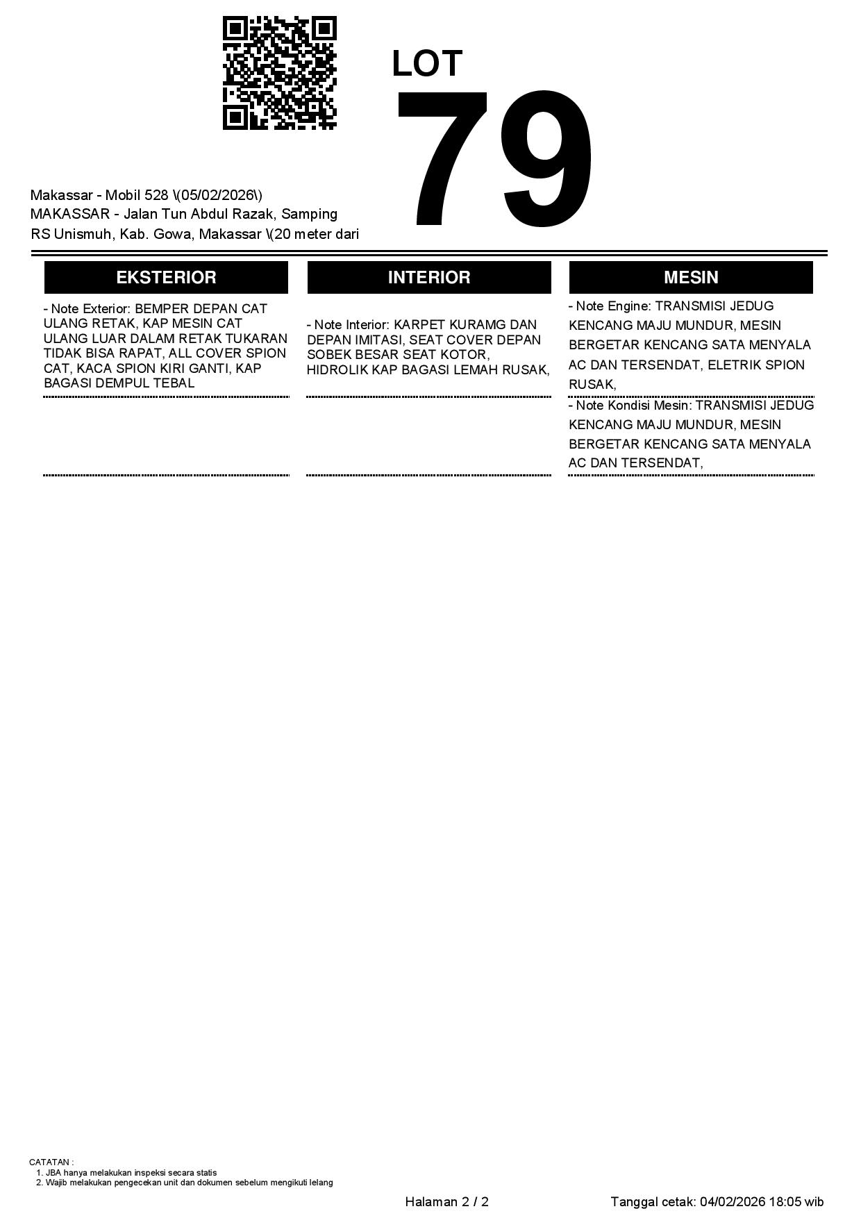2. Peserta lelang wajib cek unit & dokumen