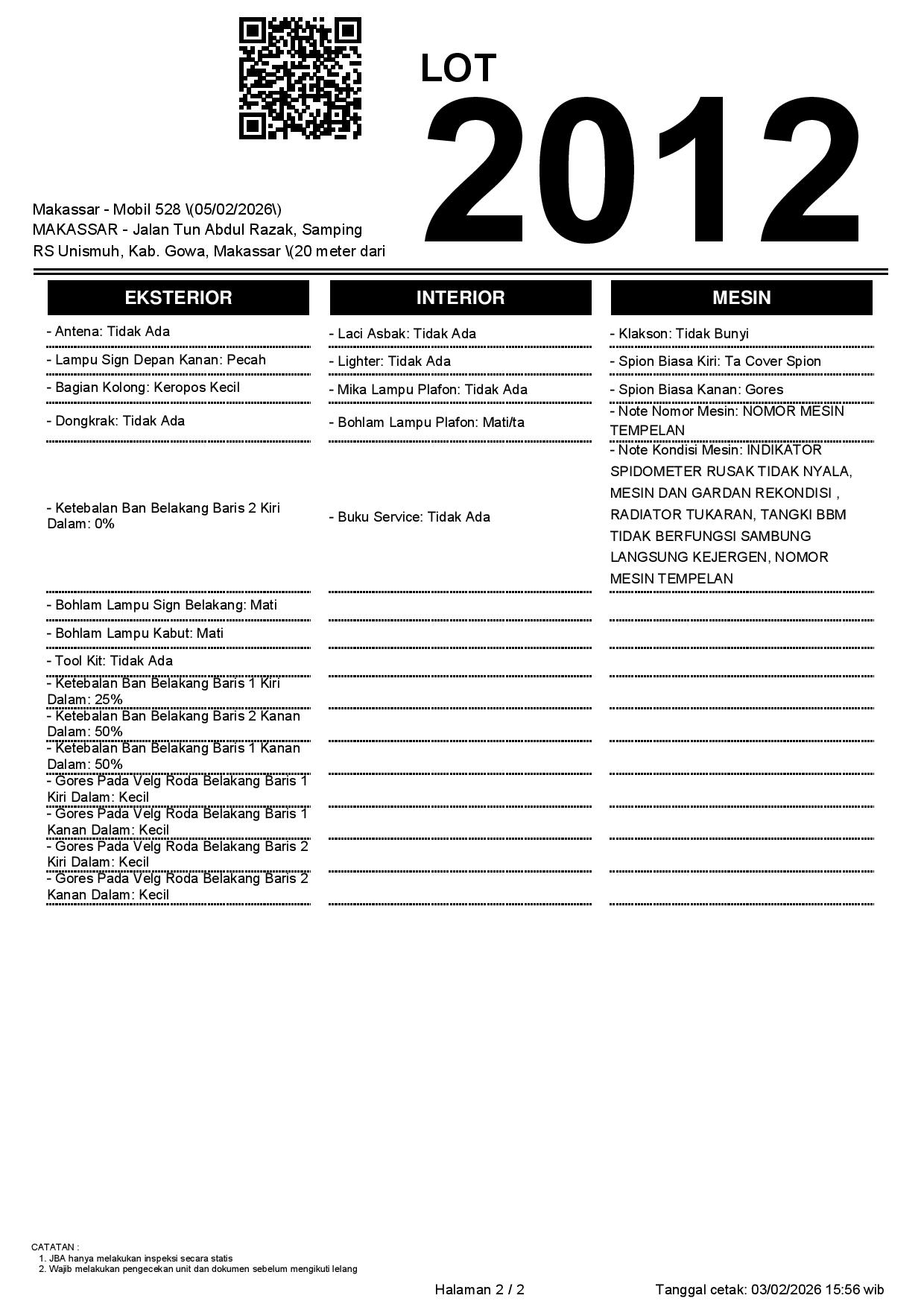 2. Peserta lelang wajib cek unit & dokumen