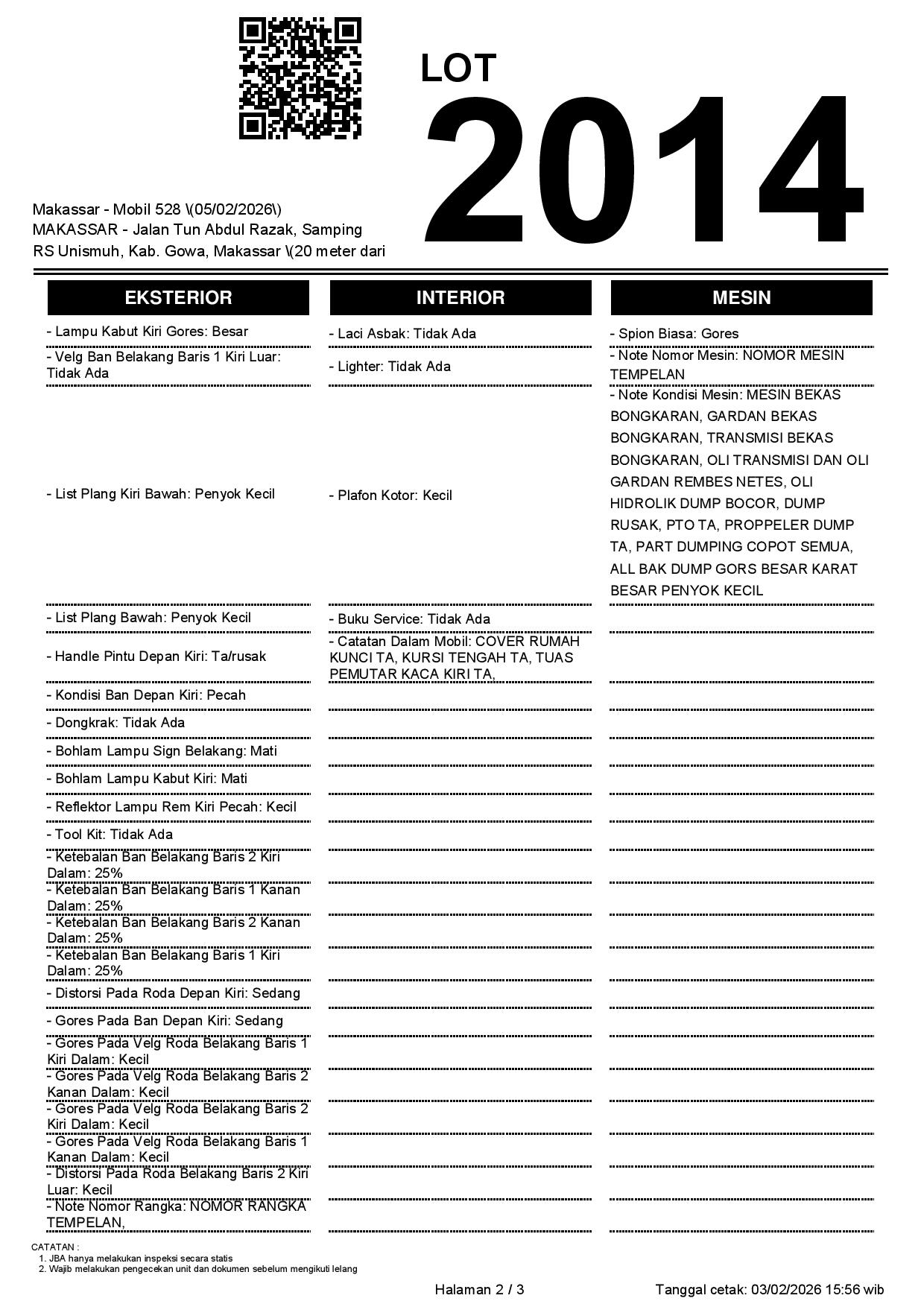 2. Peserta lelang wajib cek unit & dokumen