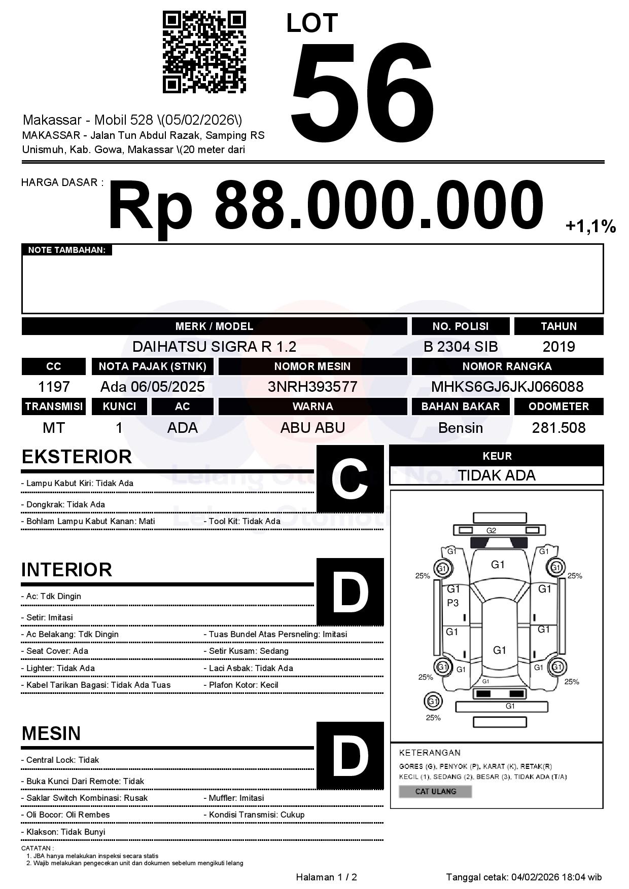 Tanggal Lelang: 05/02/2026 | 13:00 WITA