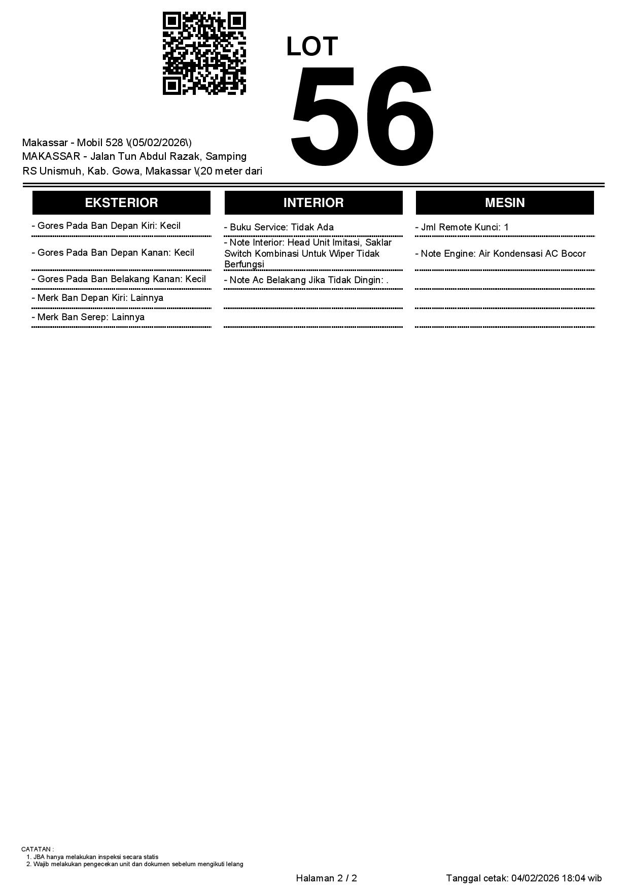 2. Peserta lelang wajib cek unit & dokumen