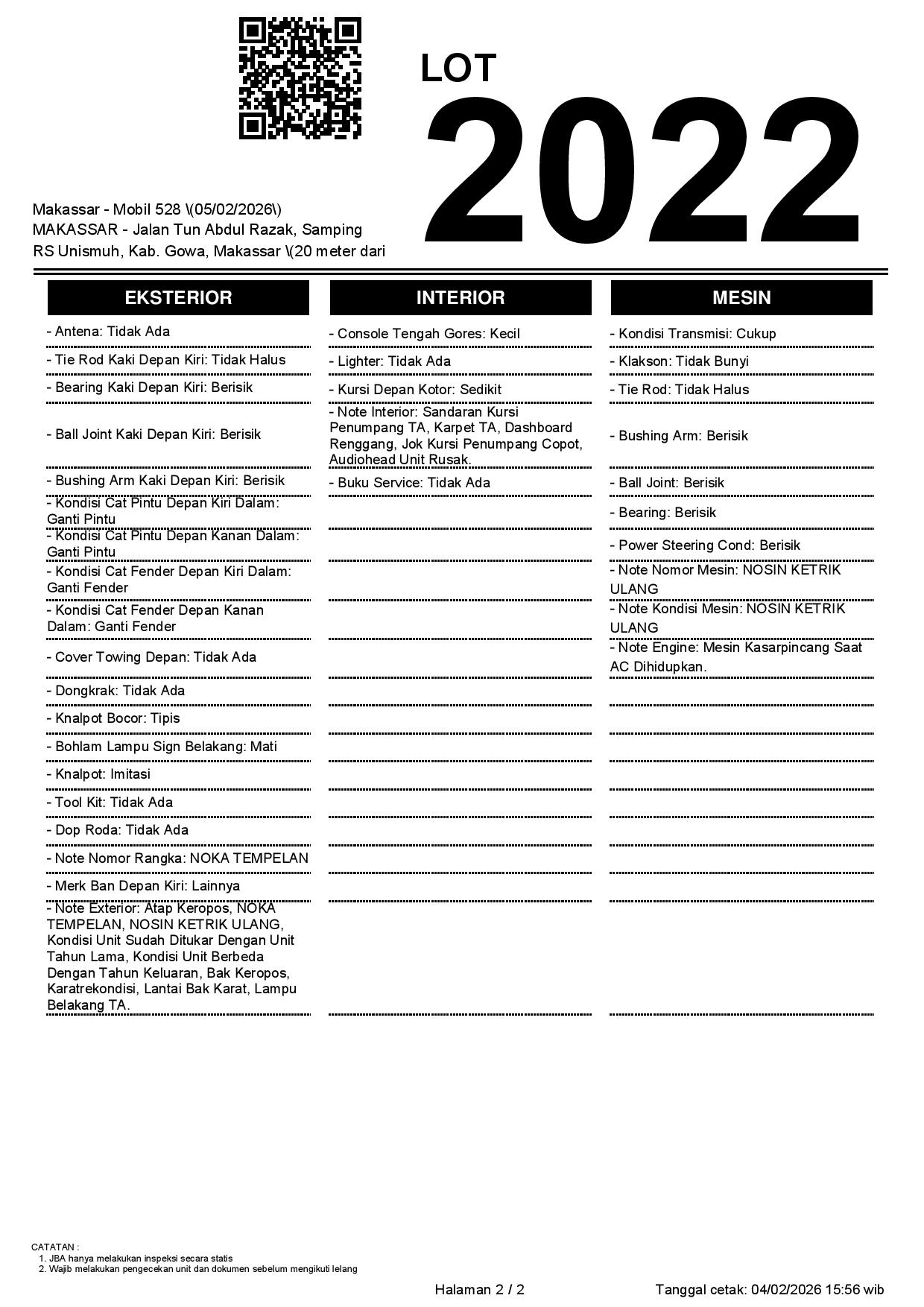 2. Peserta lelang wajib cek unit & dokumen