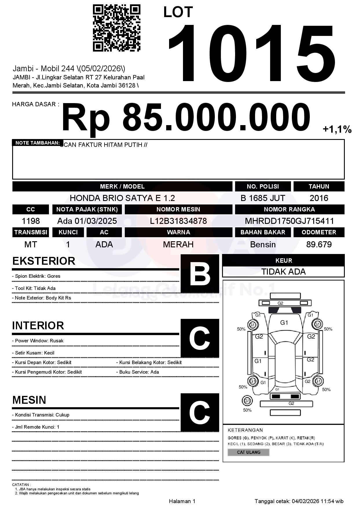 Tanggal Lelang: 05/02/2026 | 13:00 WIB