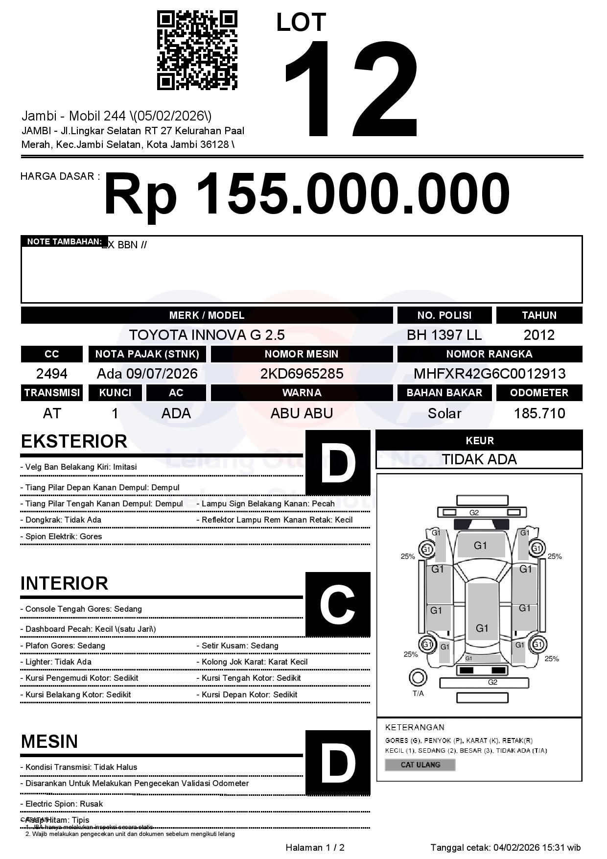 Tanggal Lelang: 05/02/2026 | 13:00 WIB