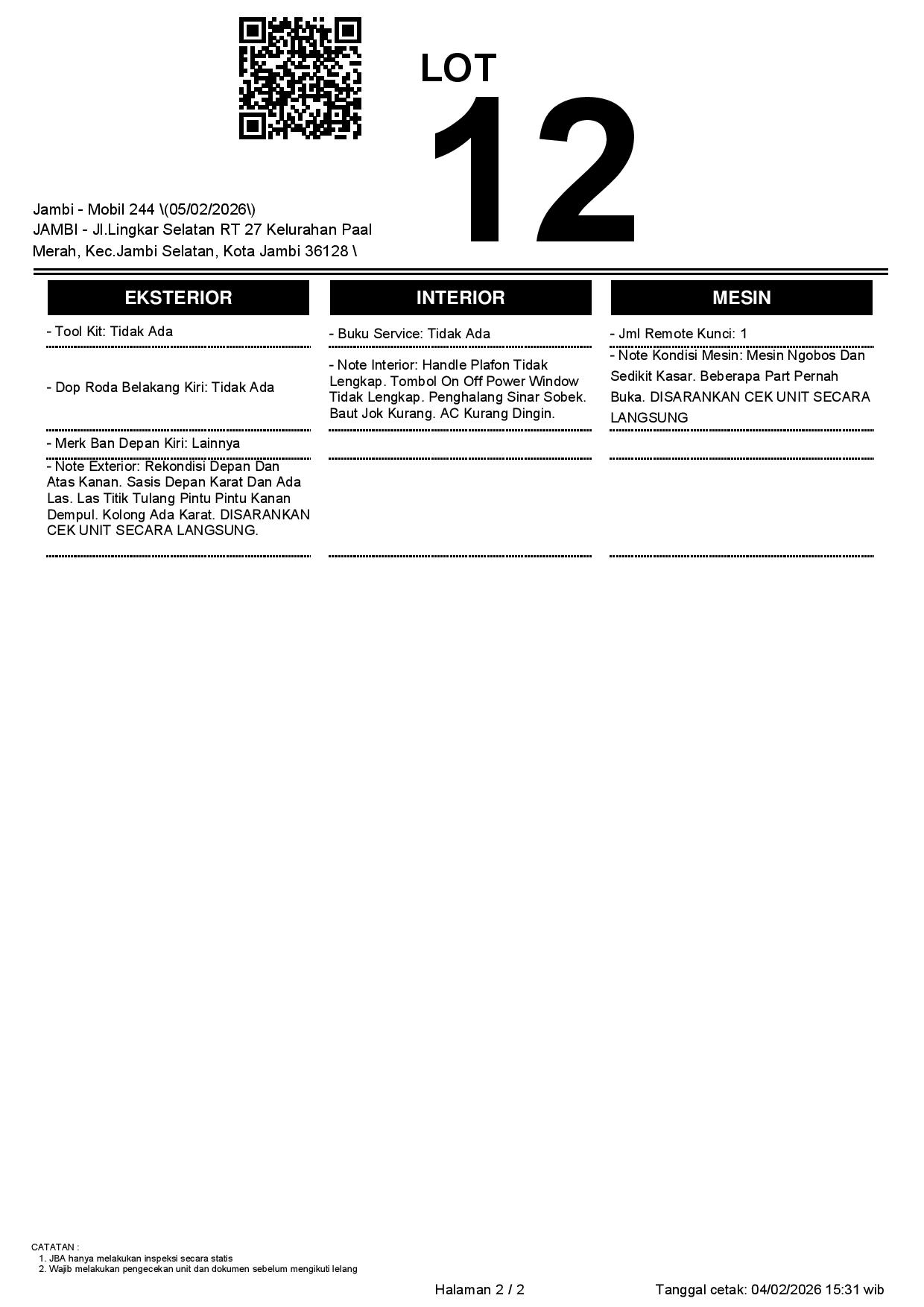1. Peserta lelang wajib cek unit & dokumen