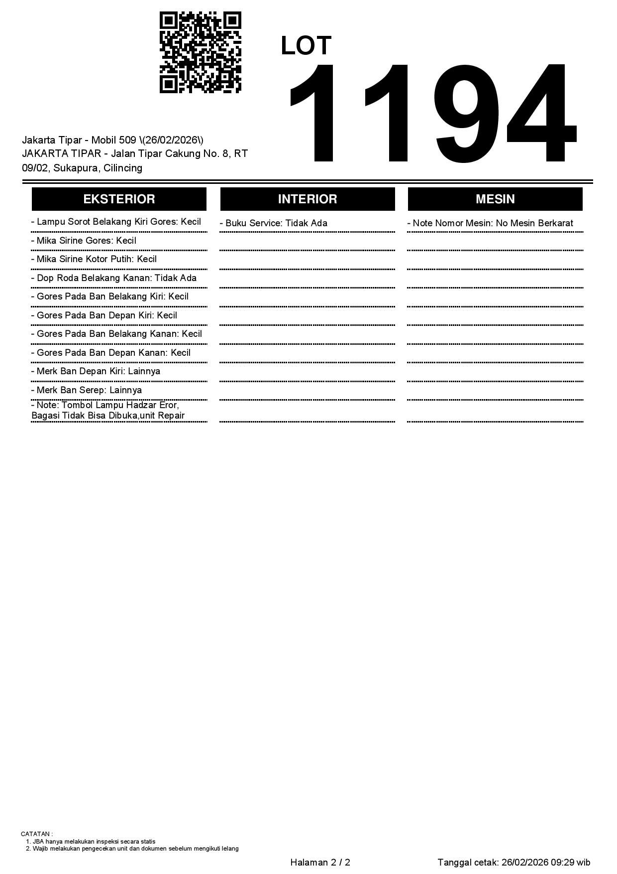 Tanggal Lelang: 26/02/2026 | 14:00 WIB