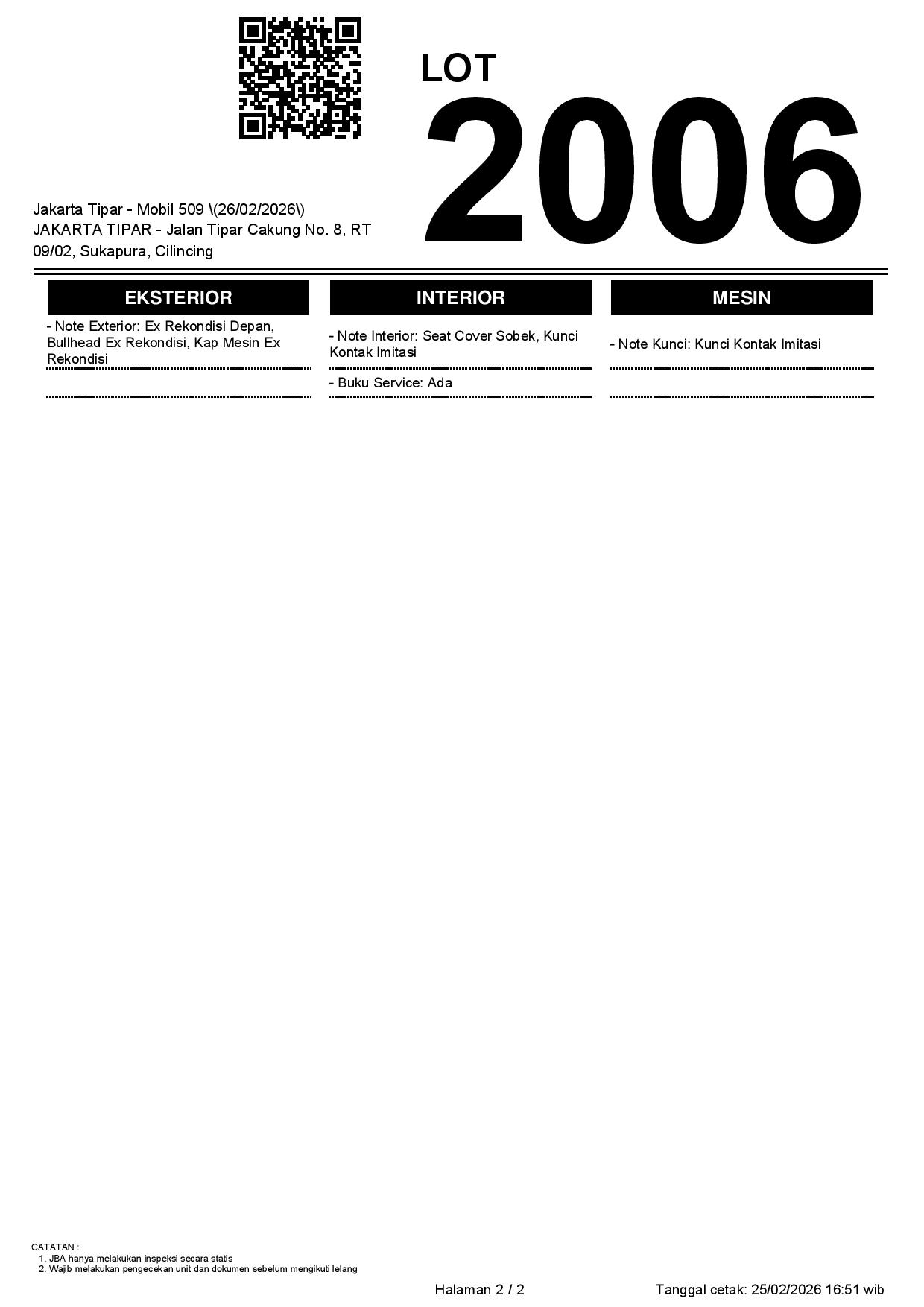 Tanggal Lelang: 26/02/2026 | 14:00 WIB