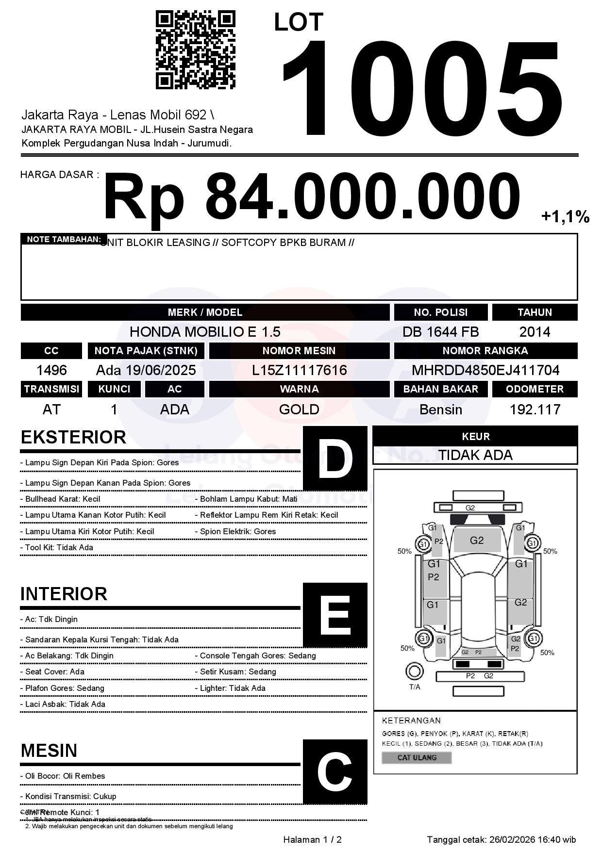 Tanggal Lelang: 26/02/2026 | 14:00 WIB