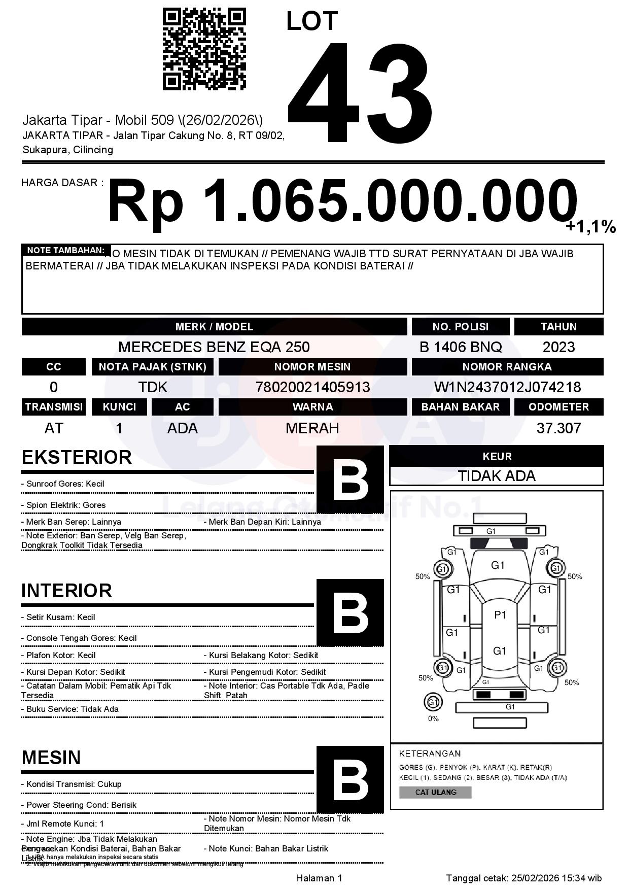 NO MESIN TIDAK DI TEMUKAN // PEMENANG WAJIB TTD SURAT PERNYATAAN DI JBA WAJIB BERMATERAI // JBA TIDAK MELAKUKAN INSPEKSI PADA KONDISI BATERAI //
