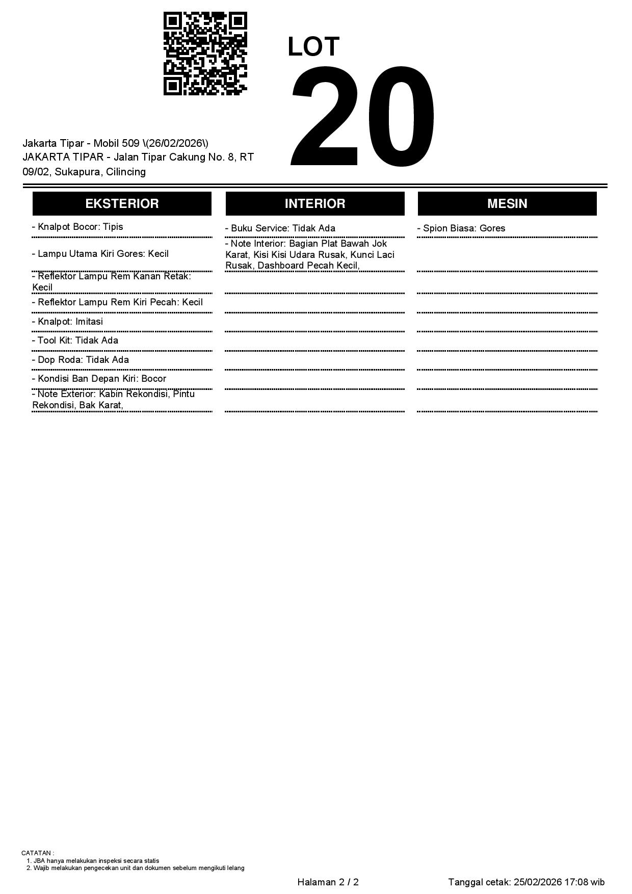 2. Peserta lelang wajib cek unit & dokumen
