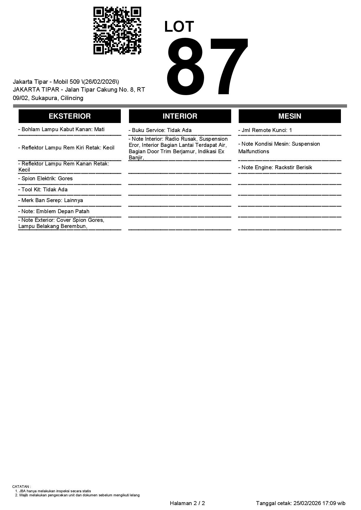 2. Peserta lelang wajib cek unit & dokumen