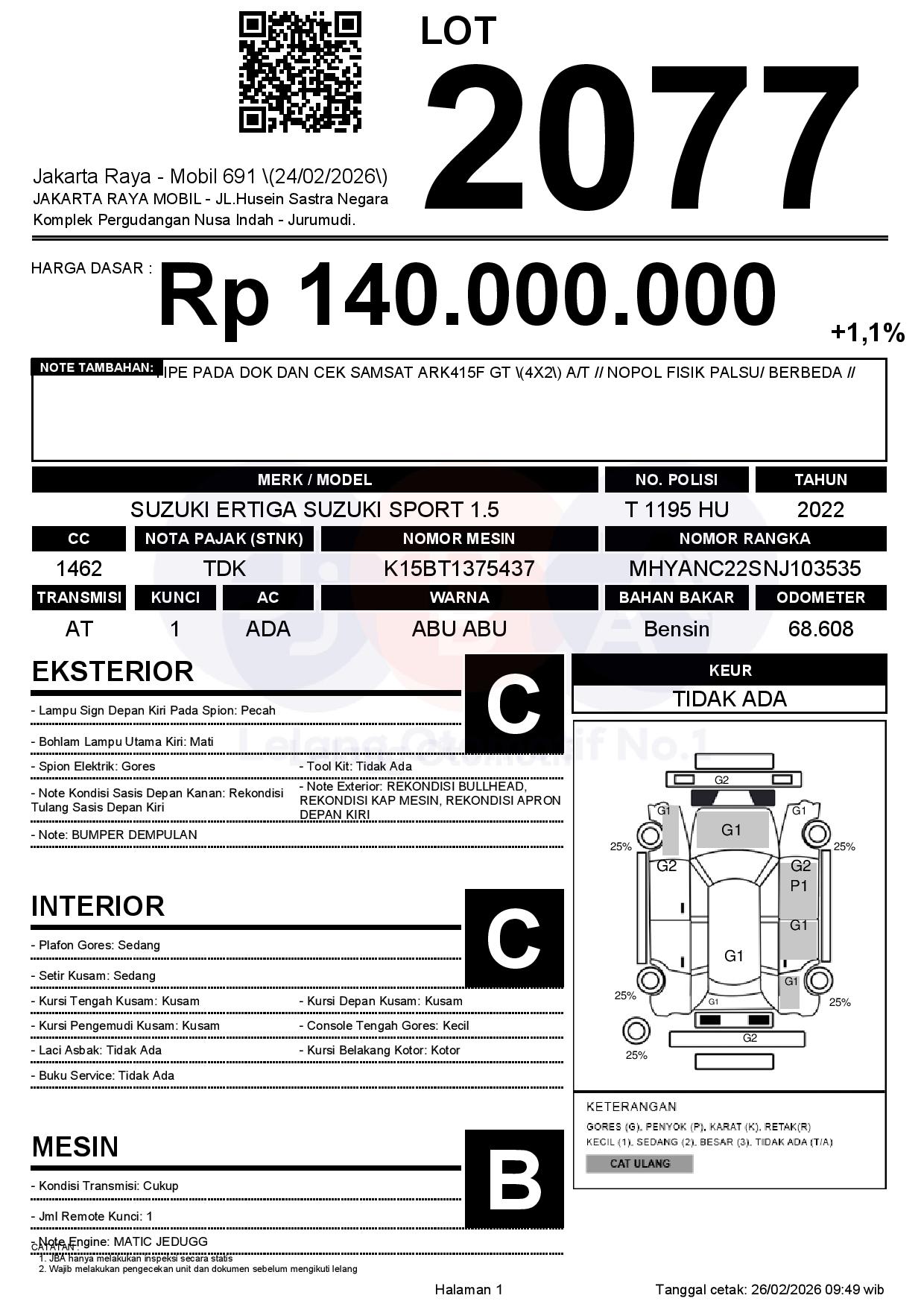 Tanggal Lelang: 26/02/2026 | 14:00 WIB