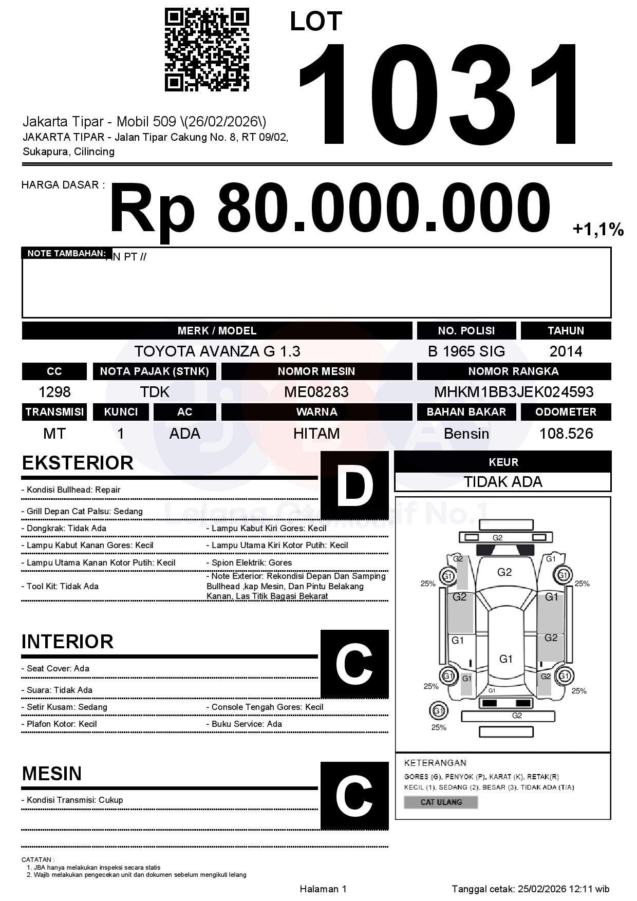 Tanggal Lelang: 26/02/2026 | 14:00 WIB