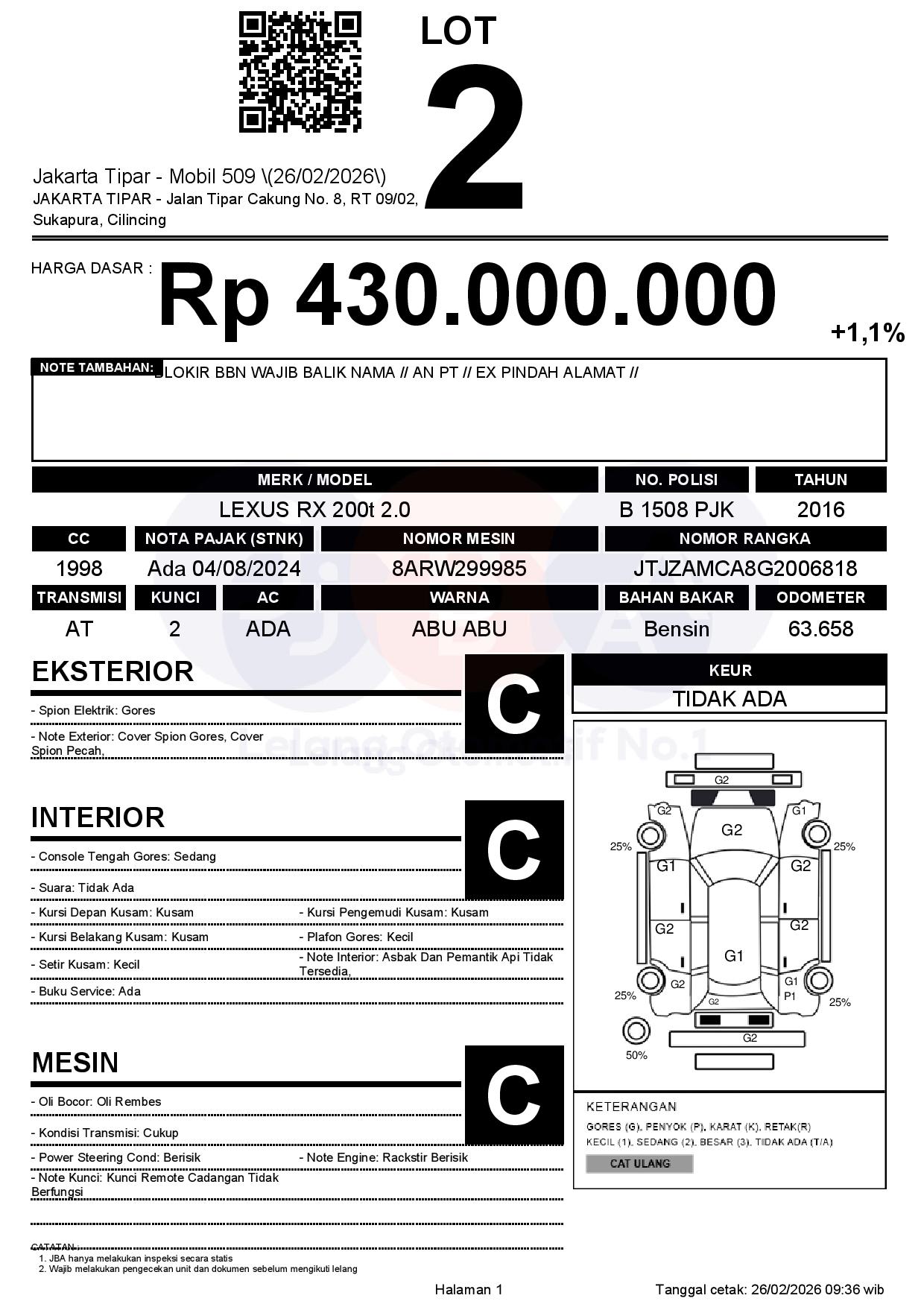 Tanggal Lelang: 26/02/2026 | 13:00 WIB