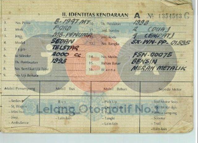 MASA BERLAKU PLAT KENDARAAN HABIS // NOPOL BLOKIR JUAL WAJIB BALIK NAMA // TIPE PADA BPKB TELSTAR TIPE PADA STNK DAN CEK SAMSAT TELSTAR 2.0 HB 5P //