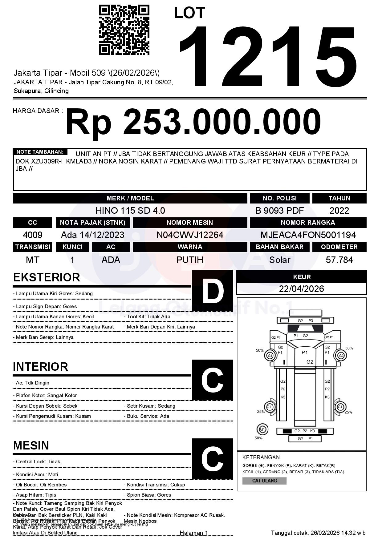 Tanggal Lelang: 26/02/2026 | 14:00 WIB