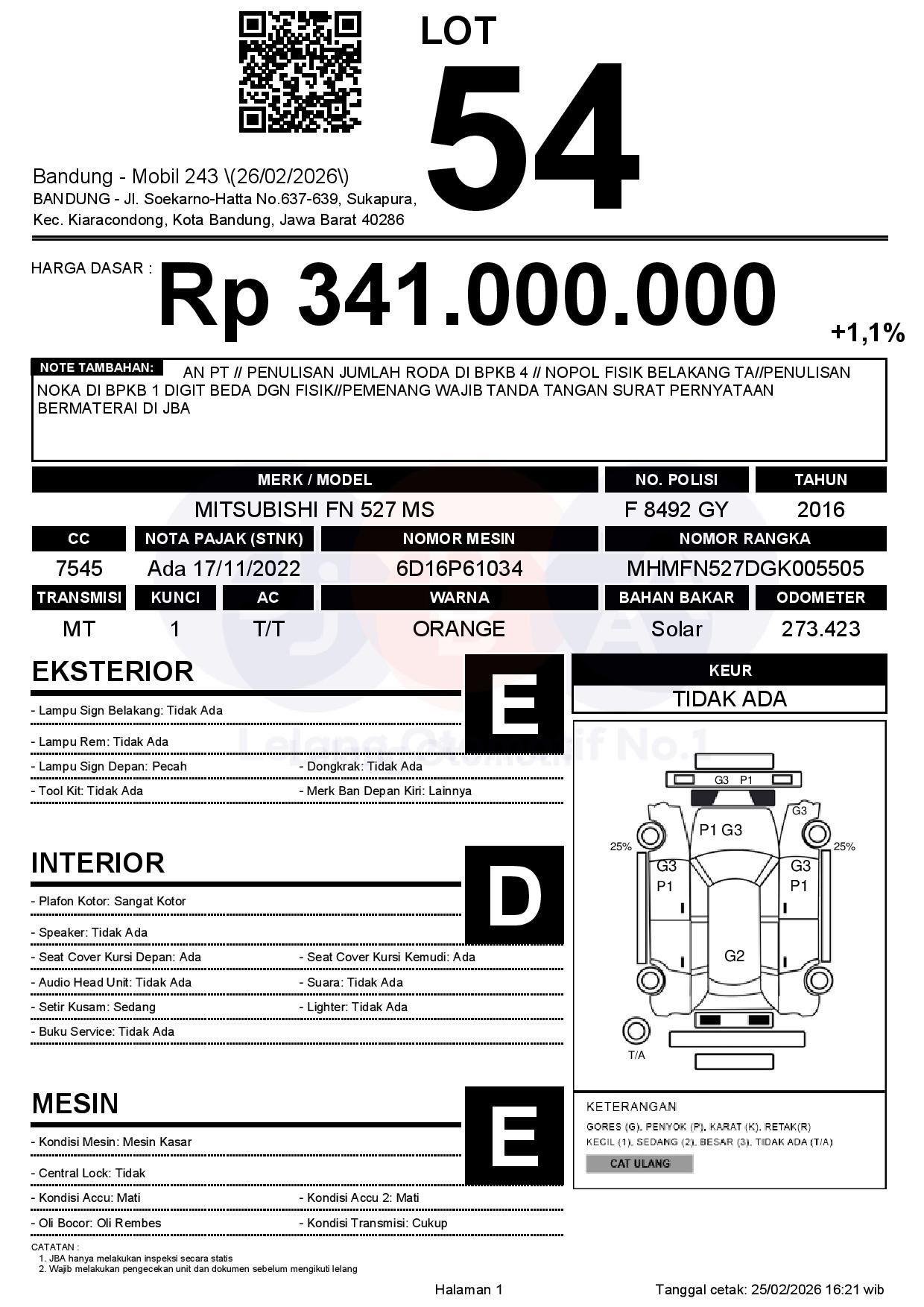 AN PT // PENULISAN JUMLAH RODA DI BPKB 4 // NOPOL FISIK BELAKANG TA//PENULISAN NOKA DI BPKB 1 DIGIT BEDA DGN FISIK//PEMENANG WAJIB TANDA TANGAN SURAT PERNYATAAN BERMATERAI DI JBA