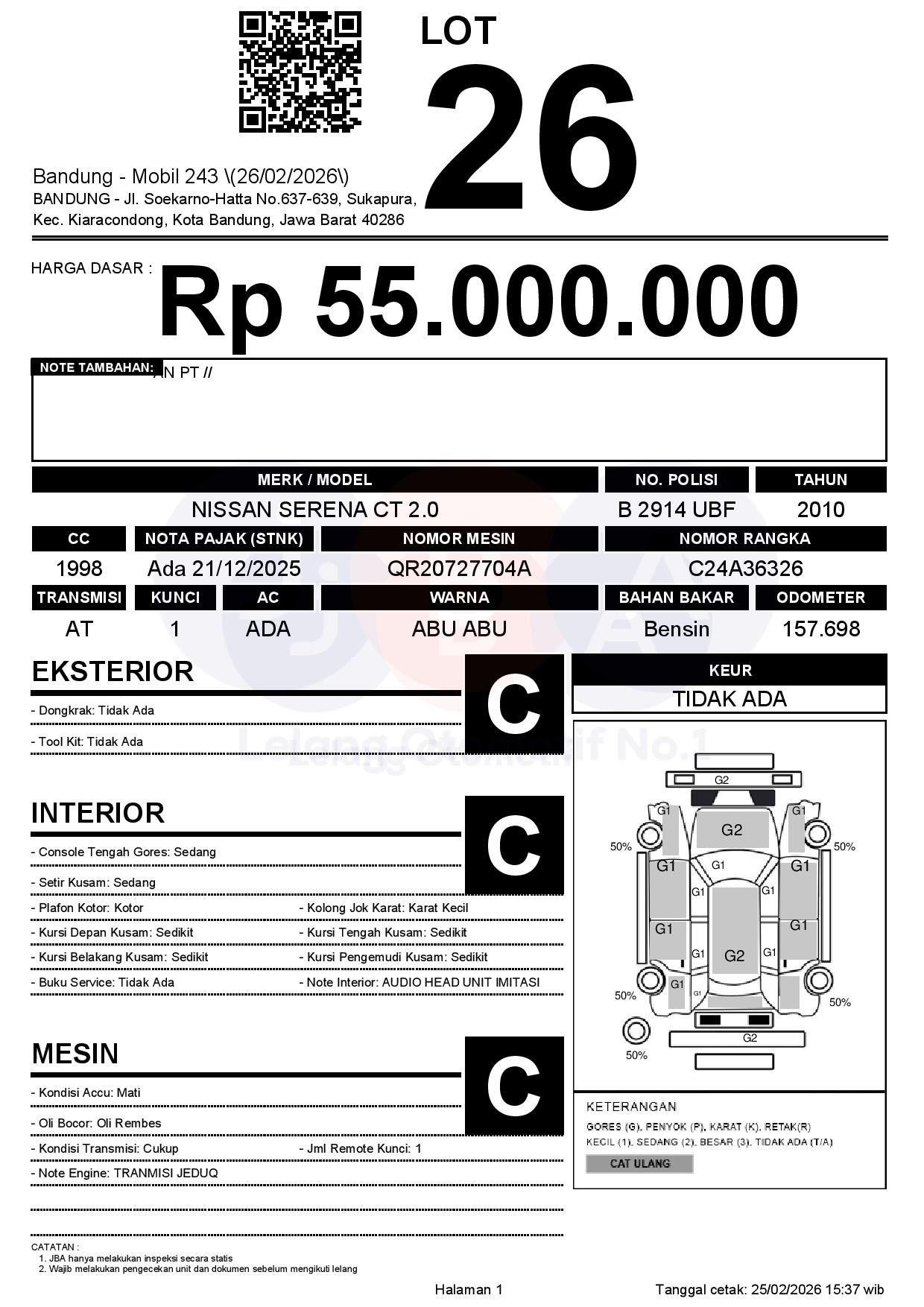 Tanggal Lelang: 26/02/2026 | 13:00 WIB
