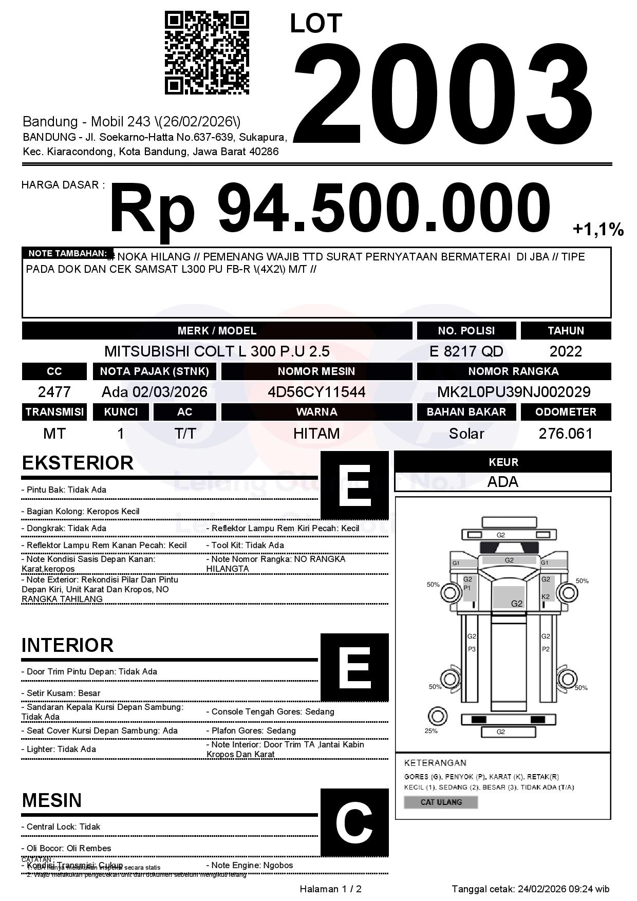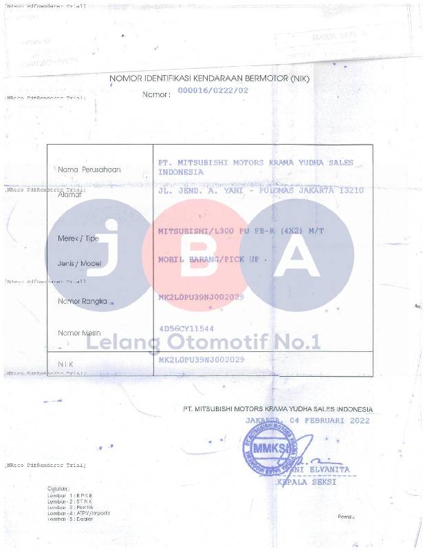 # NOKA HILANG // PEMENANG WAJIB TTD SURAT PERNYATAAN BERMATERAI DI JBA // TIPE PADA DOK DAN CEK SAMSAT L300 PU FB-R (4X2) M/T //