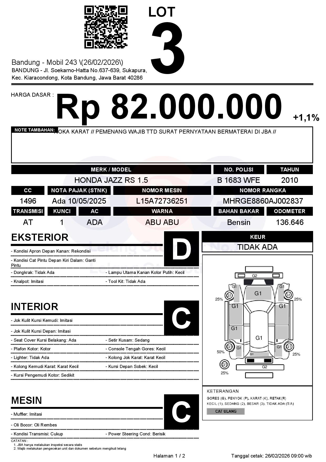 Tanggal Lelang: 26/02/2026 | 13:00 WIB