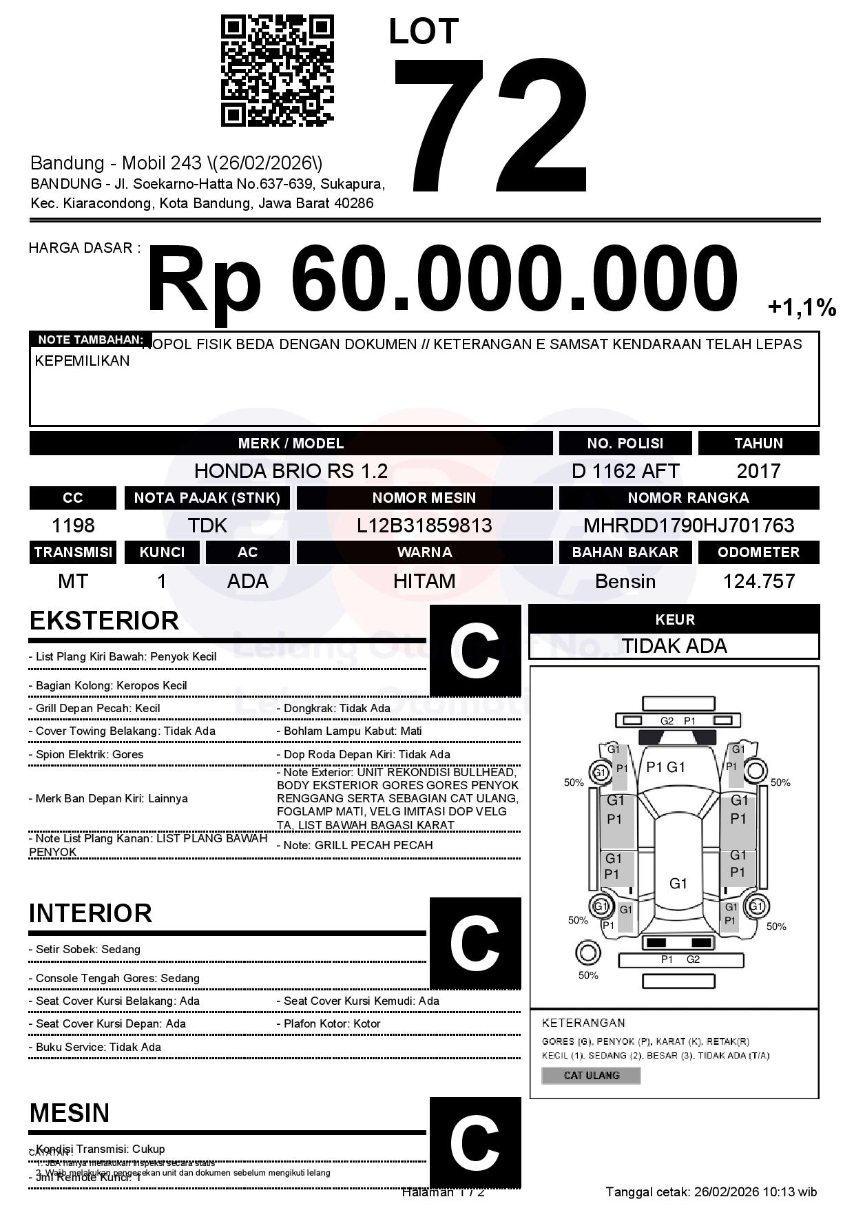 Tanggal Lelang: 26/02/2026 | 13:00 WIB