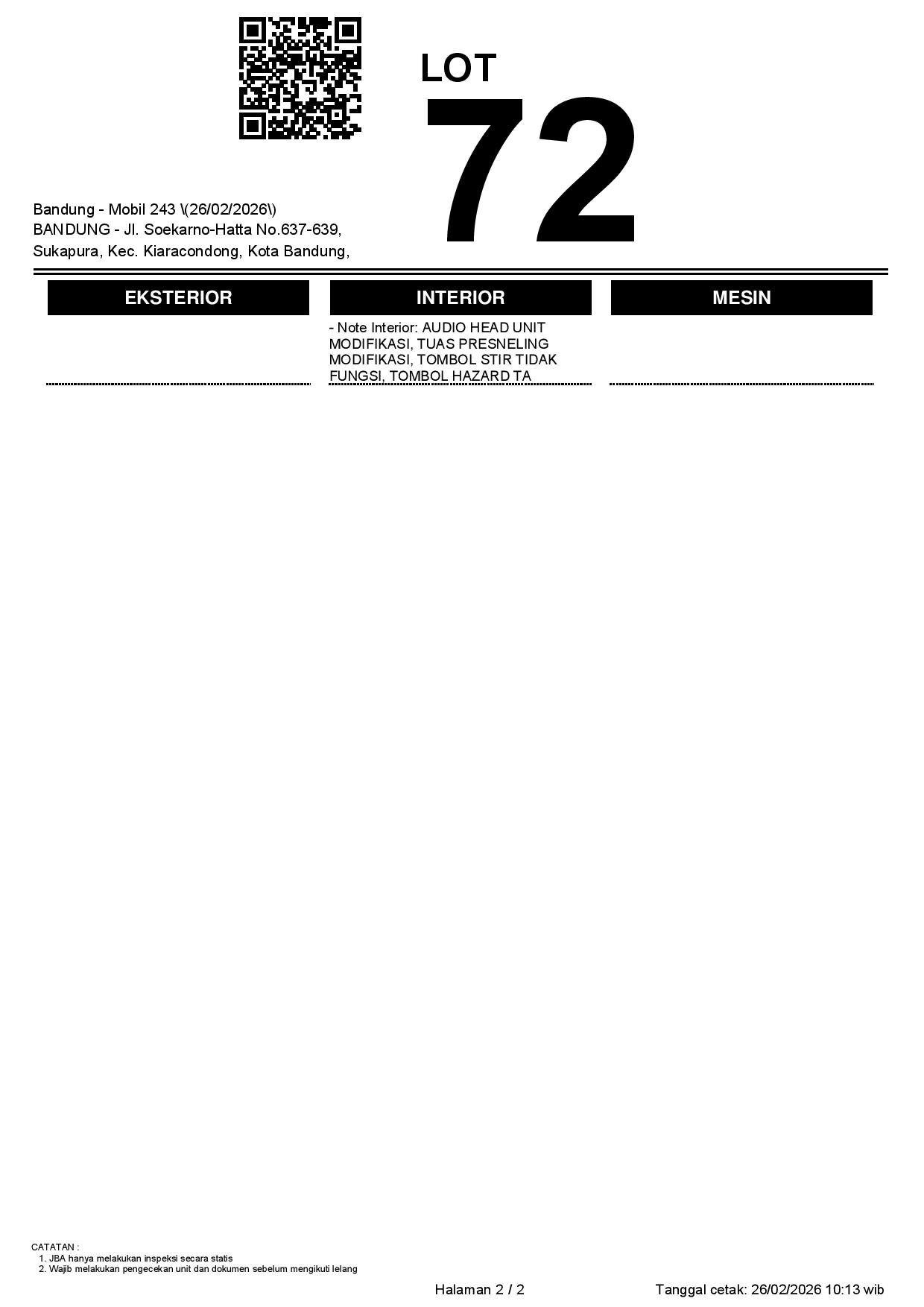 2. Peserta lelang wajib cek unit & dokumen