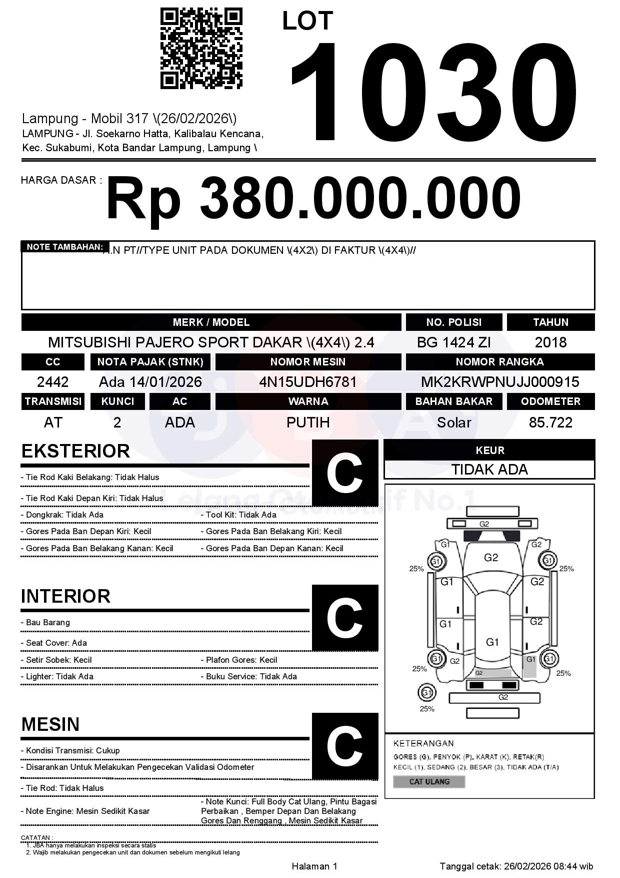 Tanggal Lelang: 26/02/2026 | 13:00 WIB