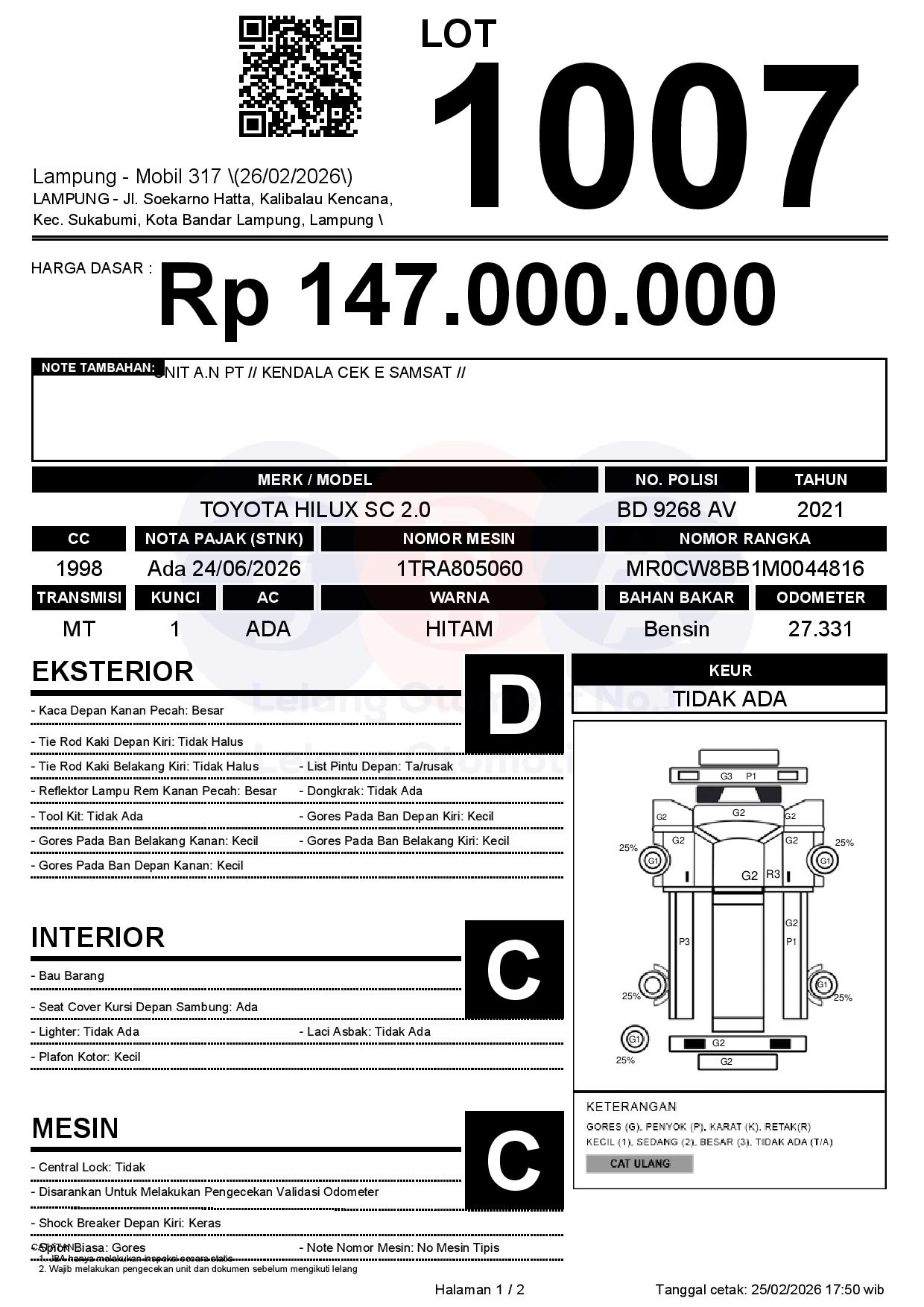 Tanggal Lelang: 26/02/2026 | 13:00 WIB