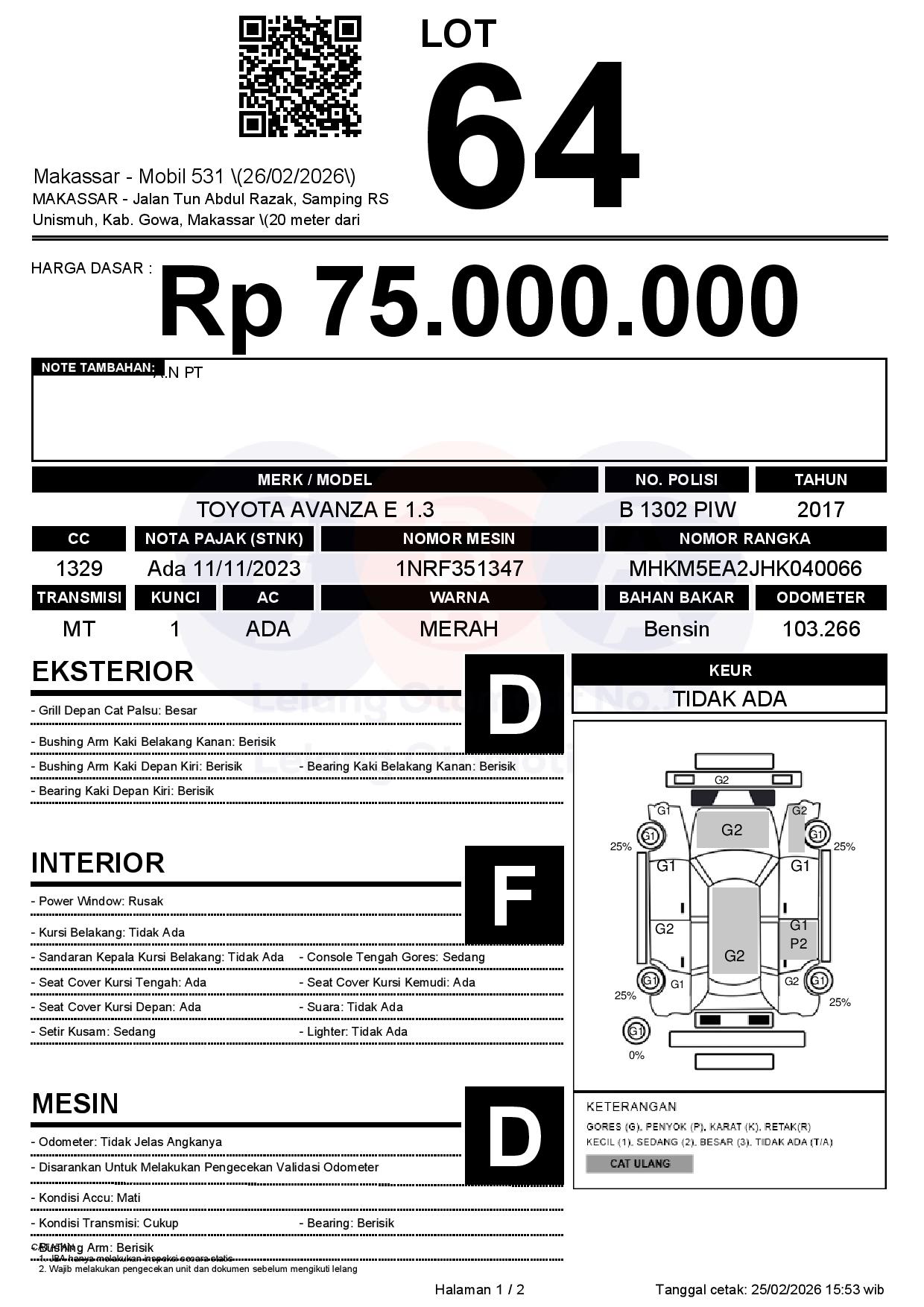 Tanggal Lelang: 26/02/2026 | 13:00 WITA