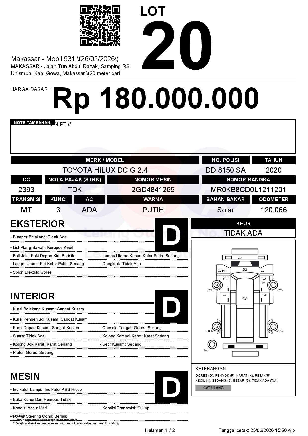 Tanggal Lelang: 26/02/2026 | 13:00 WITA