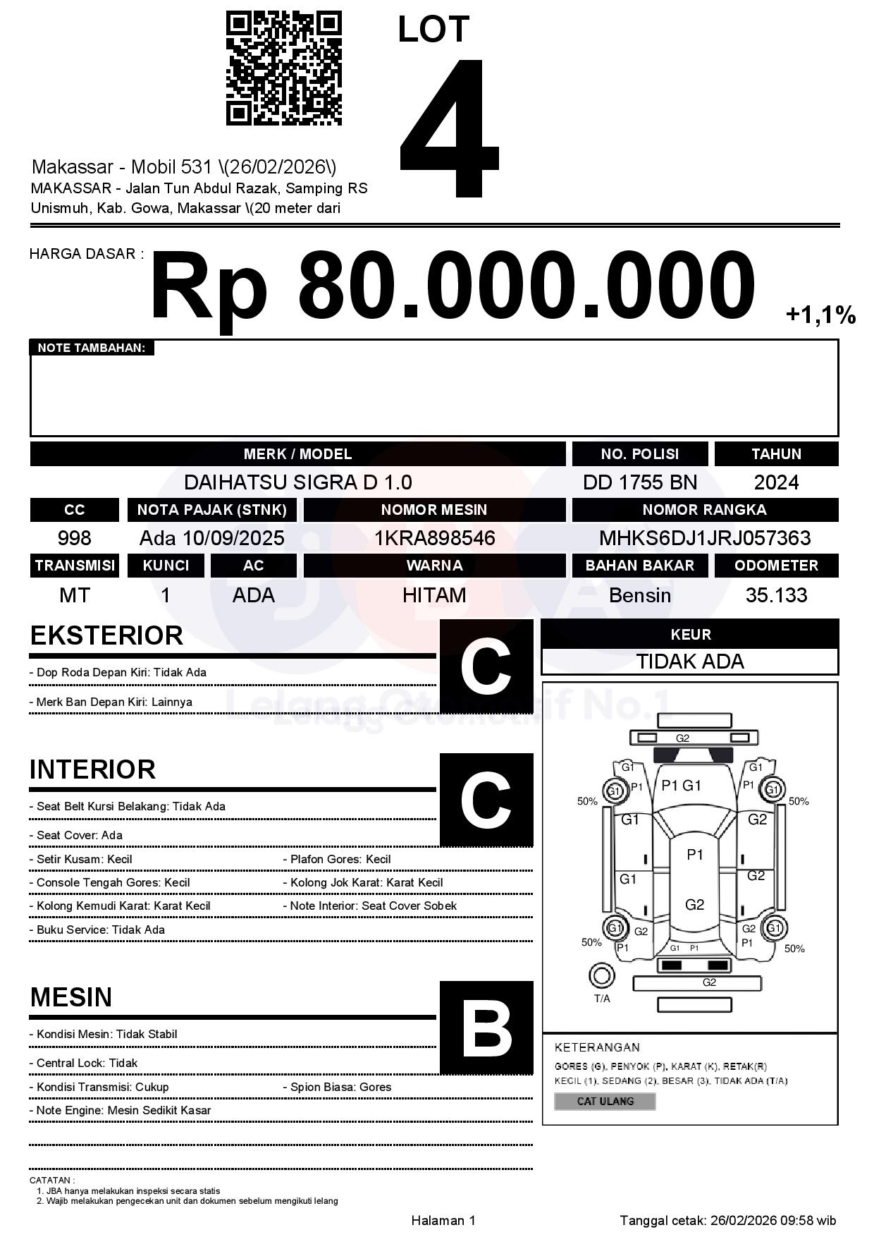 Tanggal Lelang: 26/02/2026 | 13:00 WITA