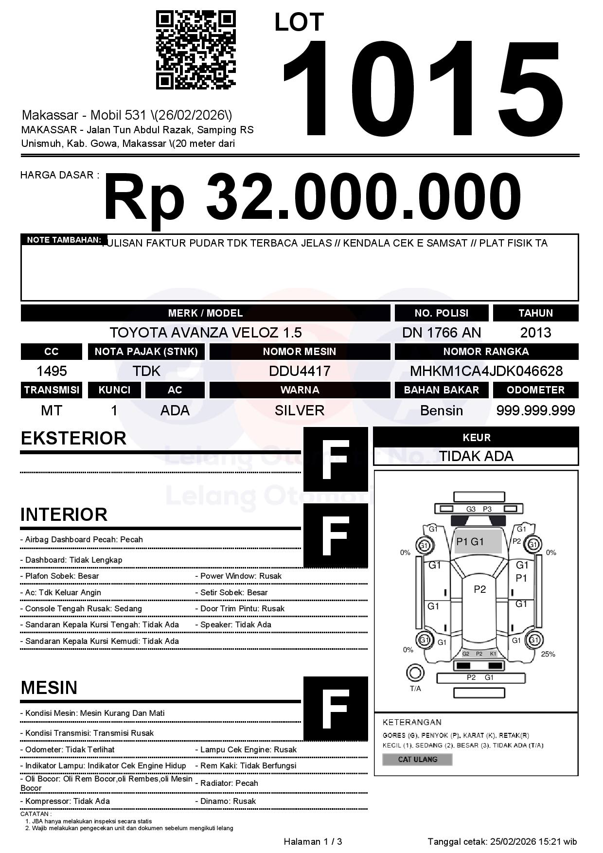 Tanggal Lelang: 26/02/2026 | 13:00 WITA